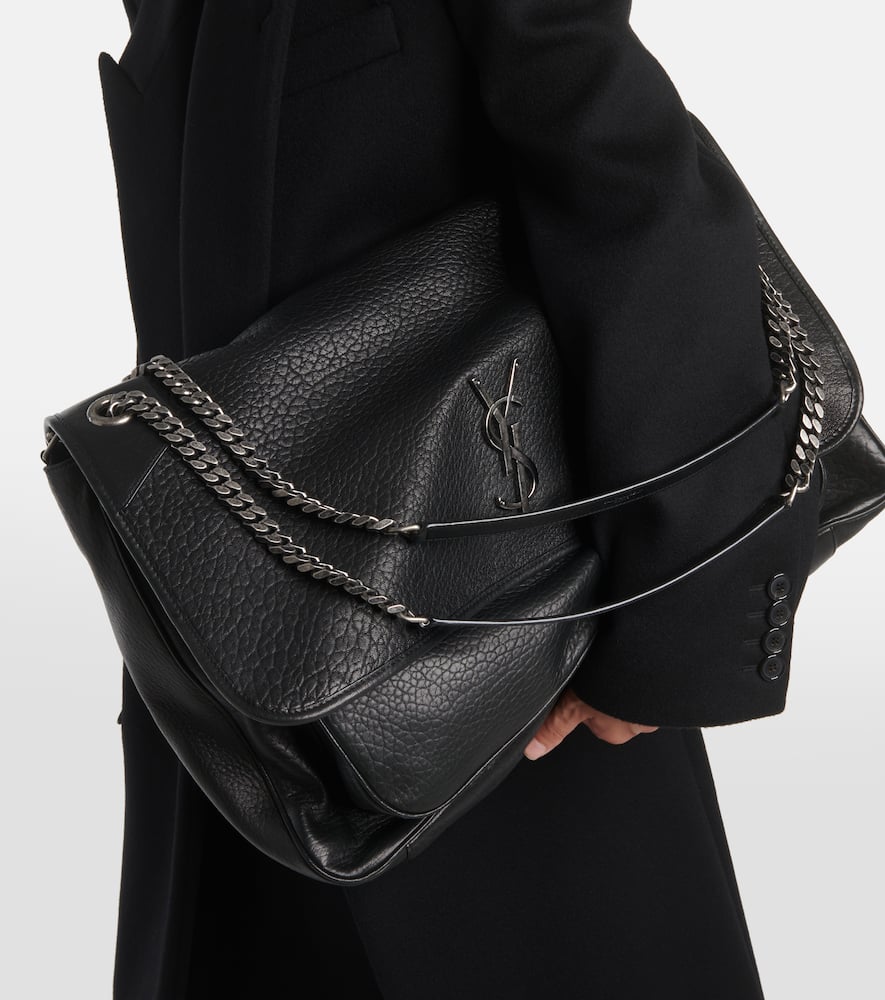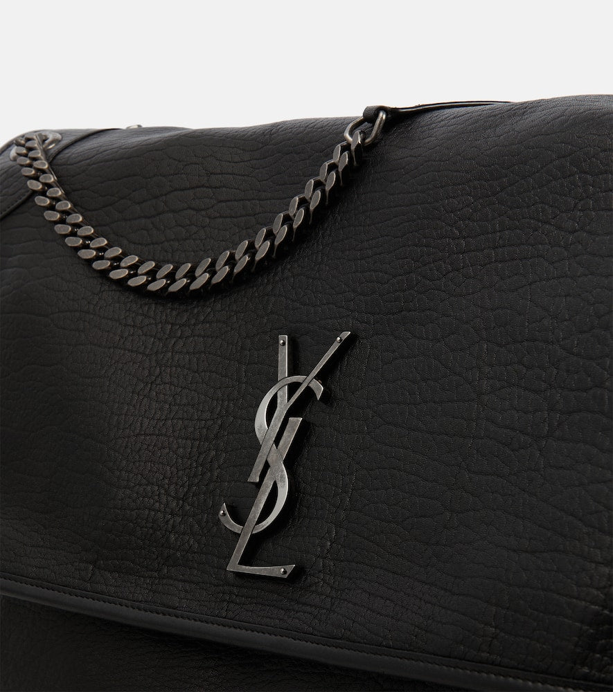 Material: lamb leather. Made in Italy. Designer color name: Noir. Closure: magnetic fastening. Internal details: fabric lining, three internal compartments, internal zipped pocket. Shoulder straps. Front pocket under flap. Back slot pocket. Comes with dust bag. Shop the latest Saint Laurent Shoulder Bags for women now.