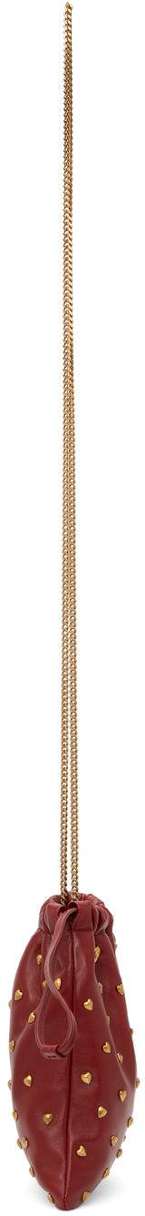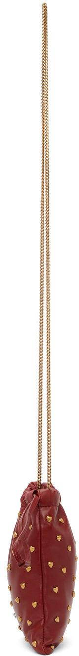 Buffed lambskin shoulder bag in red. Curb chain shoulder strap. Gold-tone logo stamp and studded detailing at face. Leather drawstring at throat. Embossed leather logo patch at interior. Tonal twill lining. Gold-tone hardware. Approx. 6 length x 7.5 height x 1 width. Supplier color: Red Lambskin. Brand: Saint Laurent