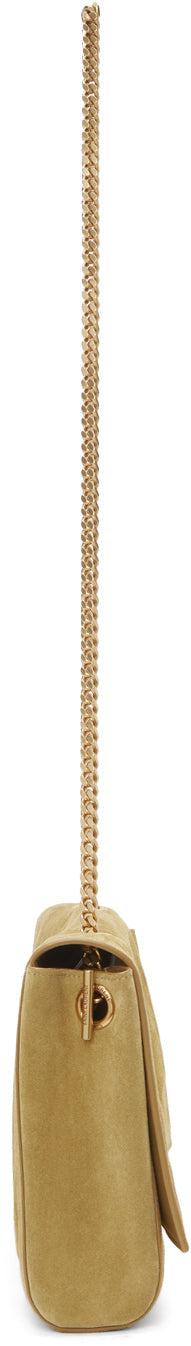 Reversible calfskin suede shoulder bag in khaki. Detachable curb chain shoulder strap with toggle fastening. Logo plaque at face. Foldover flap. Gold-tone logo stamp and patch pocket at interior. Logo-engraved gold-tone hardware. Approx. 11.5 length x 8 height x 2.5 width. Reverse in khaki grained calfskin. Logo plaque at face. Foldover flap. Gold-tone hardware. Supplier color: Maroon green Calfskin. Brand: Saint Laurent