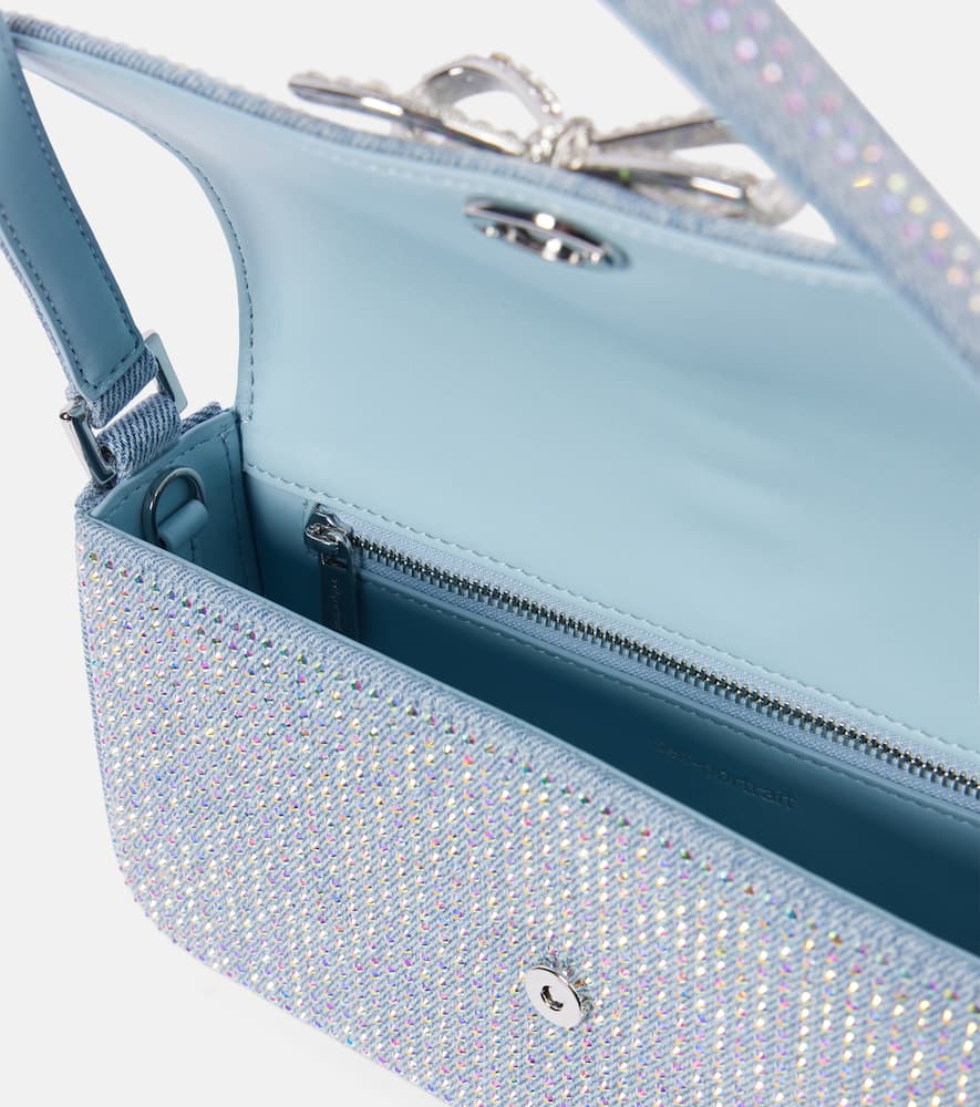Material: fabric. Lining: leather. Made in China. Designer color name: Blue. Trim: leather. Internal details: internal zipped pocket. Closure: magnetic-tab fastening. Top handle, Detachable chain shoulder strap. Includes: dust bag, box. Shop the latest Self-Portrait Shoulder Bags for women now.