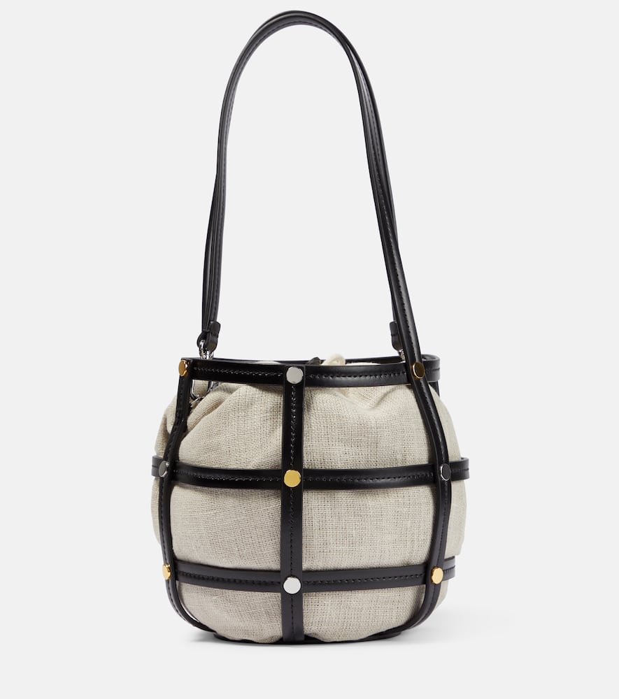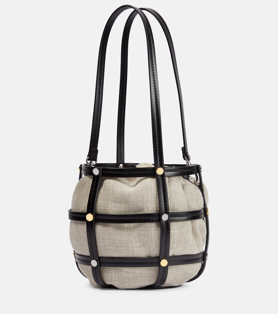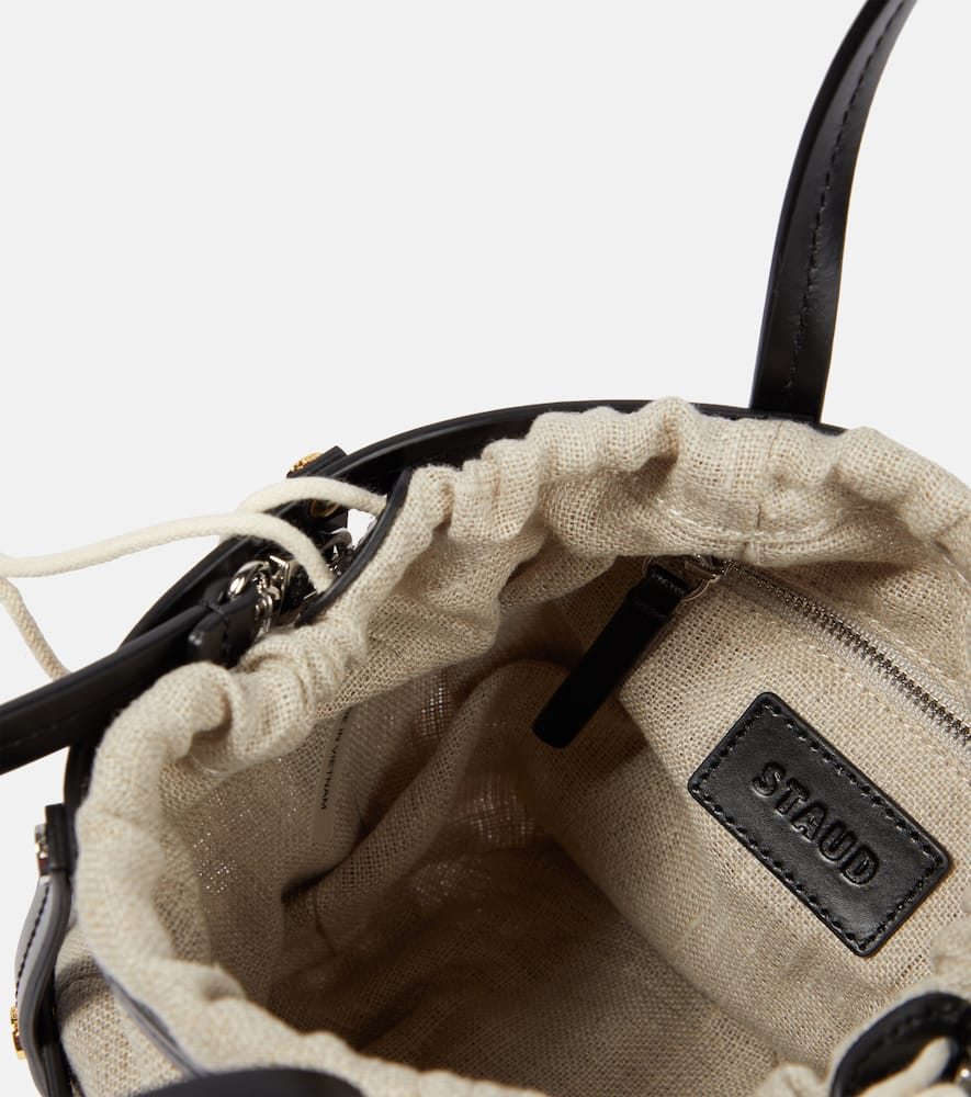Material: fabric. Detachable shoulder strap. Designer color name: Black/Natural. Made in Vietnam. Trim: leather. Comes with dust bag. Closure: drawstring top. Shop the latest Staud Shoulder Bags for women now.