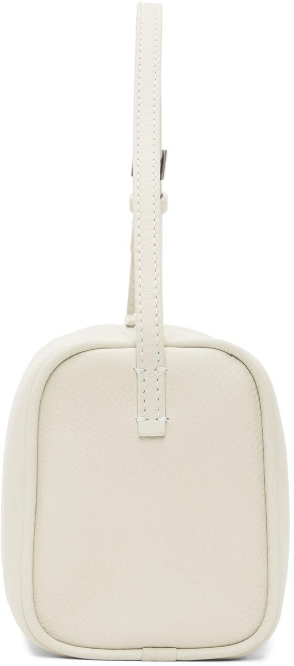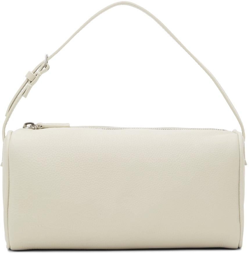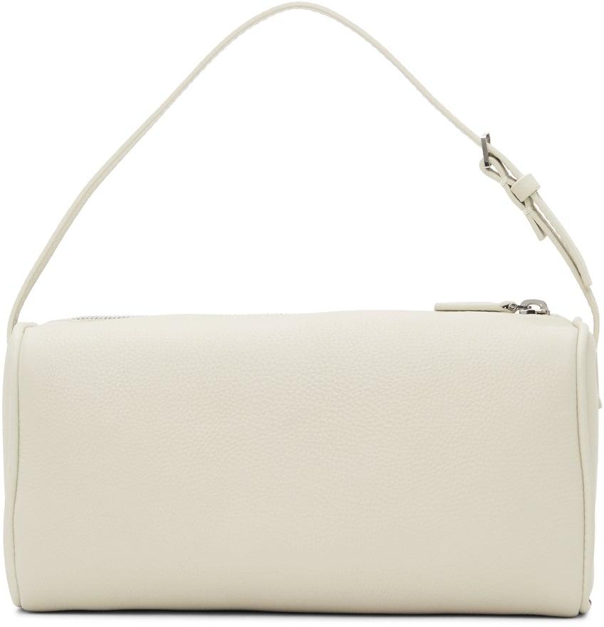 Grained calfskin shoulder bag in off-white. Adjustable shoulder strap featuring pin-buckle fastening. Zip closure. Embossed logo at side. Tonal nappa leather lining. Silver-tone hardware. Approx. 7.5 length x 3.5 height x 2.75 width. Supplier color: Ivory Calfskin. Brand: The Row