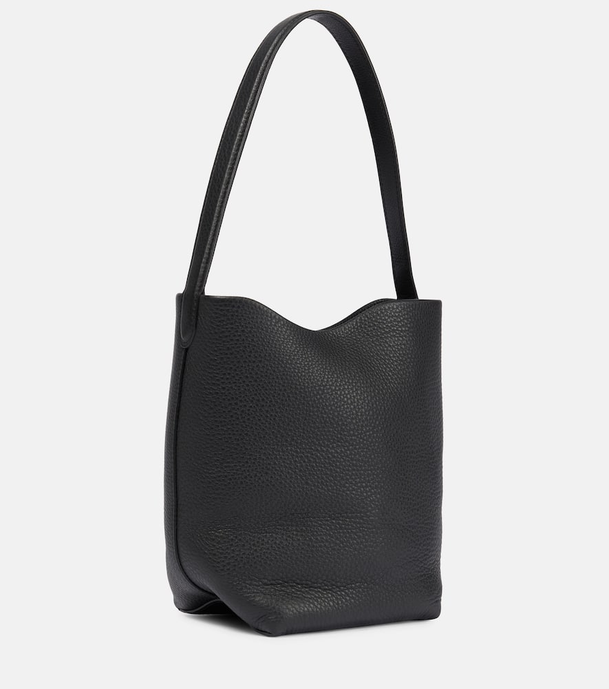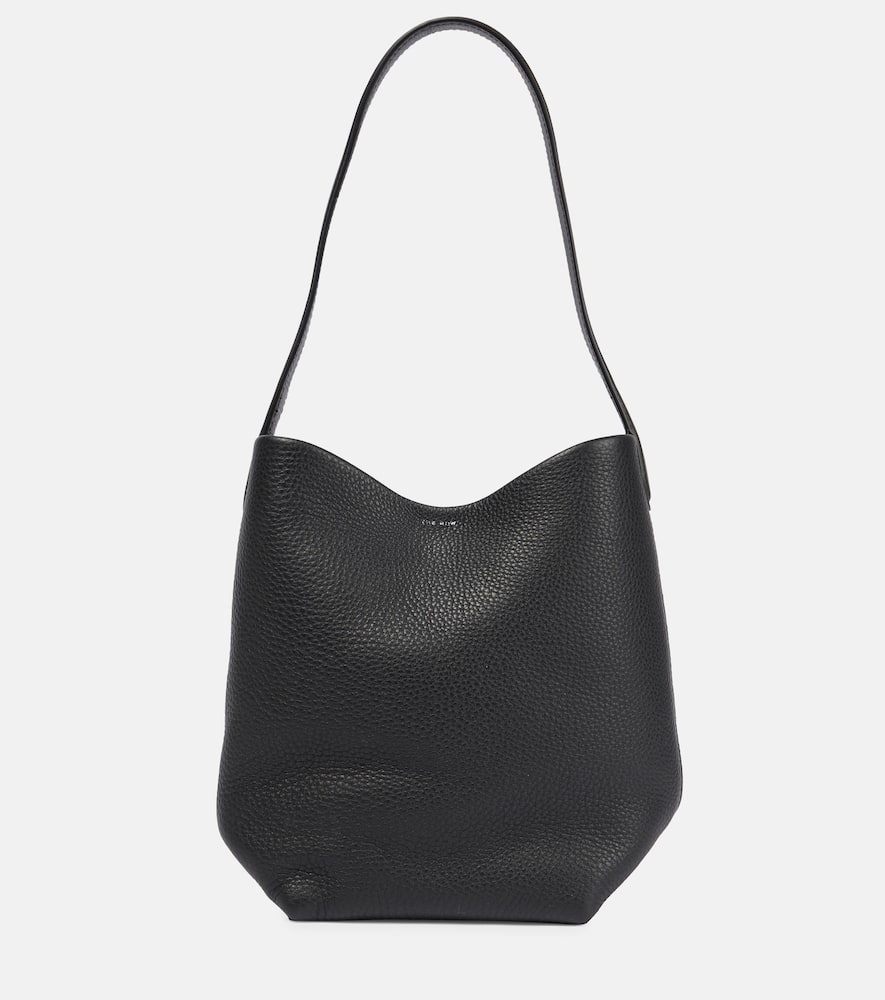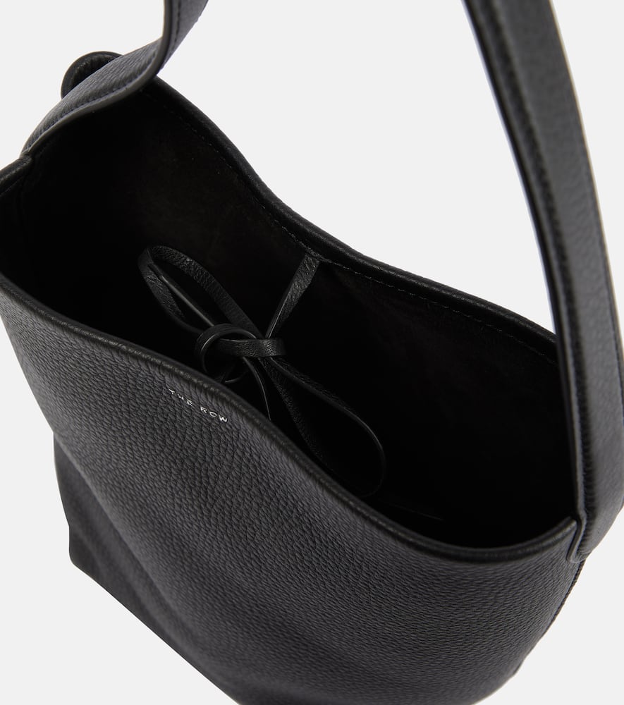 Material: calf leather. Lining: unlined. Made in Italy. Designer color name: Black Pld. Top handle. Comes with dust bag. Closure: open top. Internal details: suede lining. Shop the latest The Row Shoulder Bags for women now.