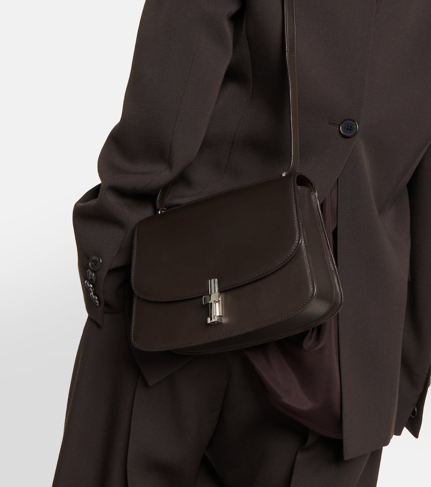 Material: leather. Lining: leather. Made in Italy. Designer color name: Dark Brown. Internal details: two internal compartments, internal slot pockets. Closure: push-stud fastening tab. Adjustable shoulder straps. Includes: dust bag. Hardware color: silver. Shop the latest The Row Shoulder Bags for women now.