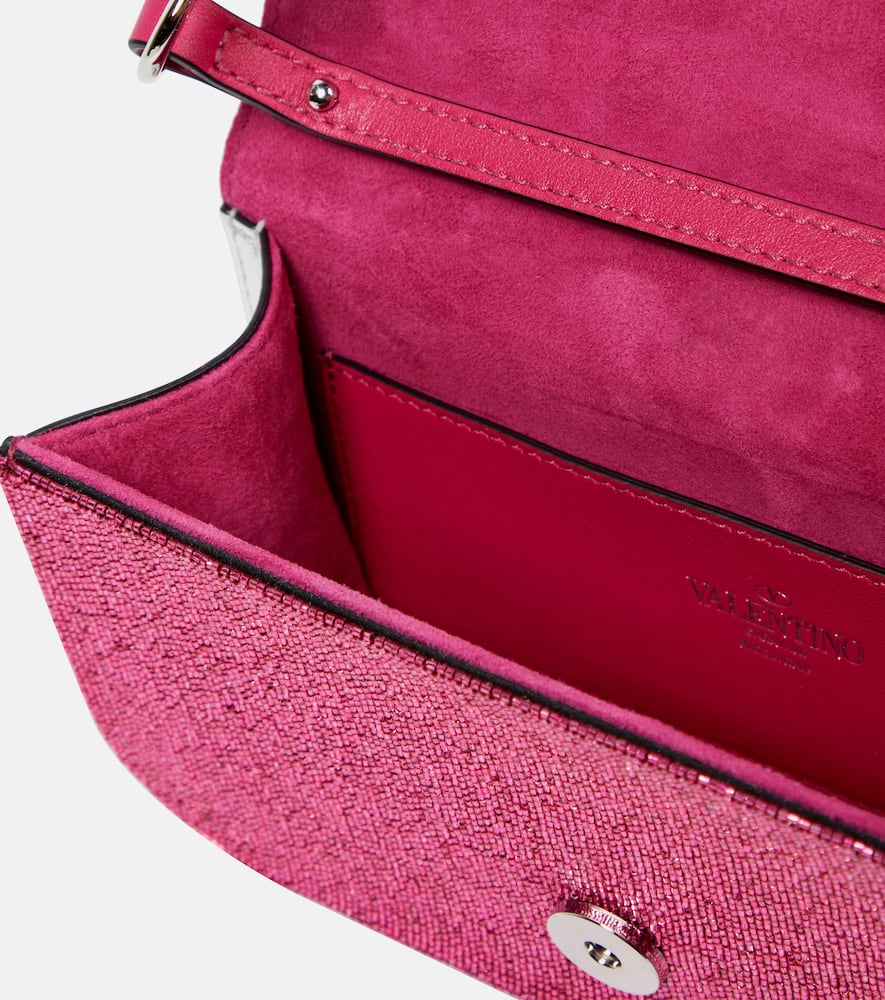 Internal details: internal slot pocket, leather lining. Made in Italy. Designer color name: Crys Drk Mag/Slv/Disco Pink. Comes with dust bag. Detachable top handle, Detachable chain shoulder strap. Closure: snap-clasp fastening. Material: lamb leather. Trim: crystals. Comes with a box. Shop the latest Valentino Garavani Shoulder Bags for women now.