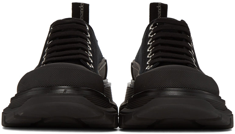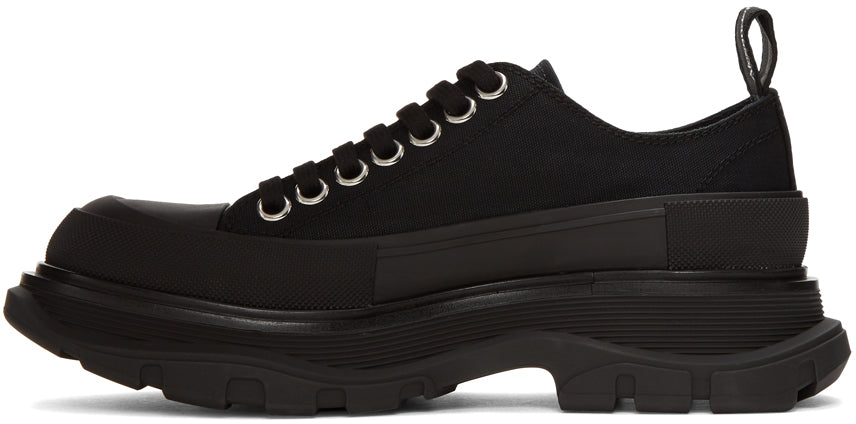 Alexander McQueen Black Canvas Tread Slick Platform Low Sneakers