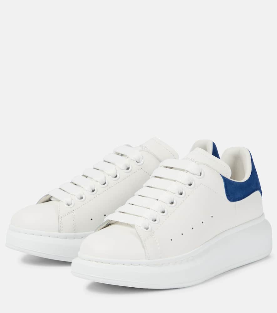 Upper: calf leather. Lining: leather. Sole: leather insole, rubber sole. Toe shape: round toe. Made in Italy. Includes: shoe box, dust bags. Designer color name: White Paris Blue. Closure: lace-up. Details: leather (suede). Shop the latest Alexander McQueen Low-Top Sneakers for women now.