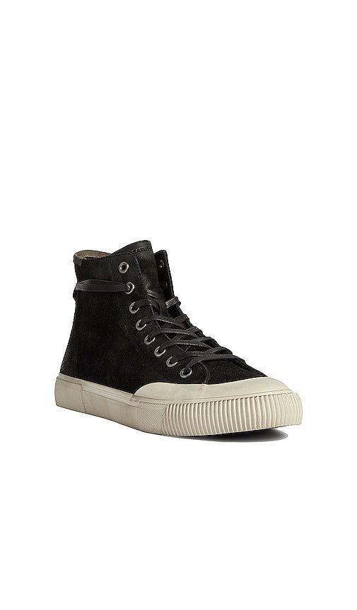 ALLSAINTS Dumont High Top in Black. - size 13 (also in 8) ALLSAINTS Dumont High Top in Black. - size 13 (also in 8) Leather upper with rubber sole. Made in China. Lace-up front. Wrap around laces. AllSAINTS logo patch at sides. ALLR-MZ5. MZ008S. Founded in East London in 1994, AllSaints breaks through the noise to offer something different. Cult leather jackets and signature biker boots - it's what they do. Prints you weren't expecting, and accessories you'll keep coming back for. It's about innovation, about turning your back on the trends and making your own rules, a uniform without uniformity. AllSaints is an attitude, wear it your way. Shop the latest in fashion from ALLSAINTS