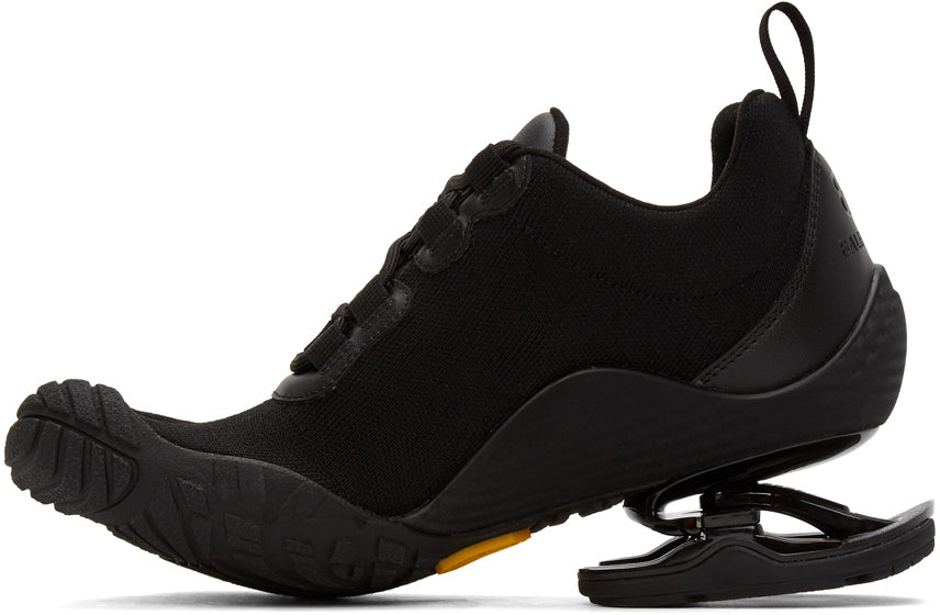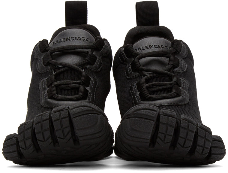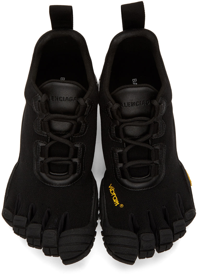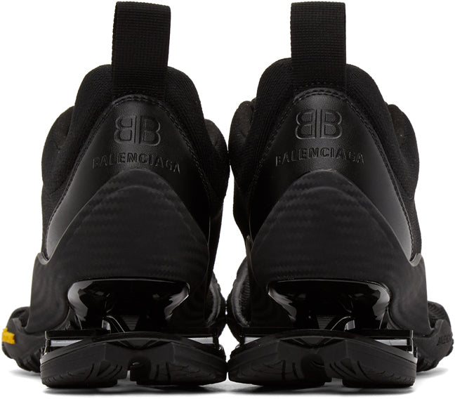 Low-top stretch knit sneakers in black. Leather details throughout. Round articulated toes. Lace-up closure. Embossed logo at tongue. Pull-loop at embossed logo at heel. Logo embossed and printed in yellow at sides. Treaded Vibram® rubber outsole featuring articulated Vibram® suspension at heel. Approx. 1.5 heel. Supplier color: Black Upper: textile, leather. Sole: rubber. Brand: Balenciaga