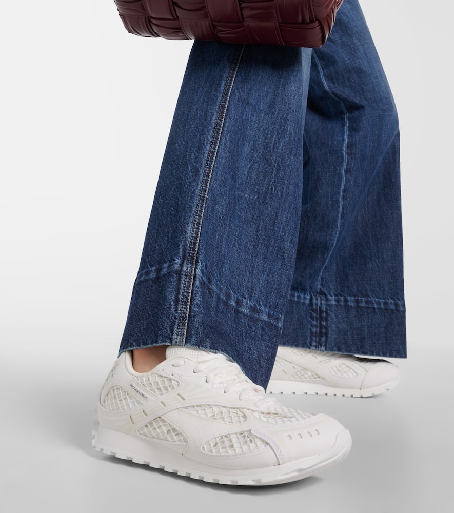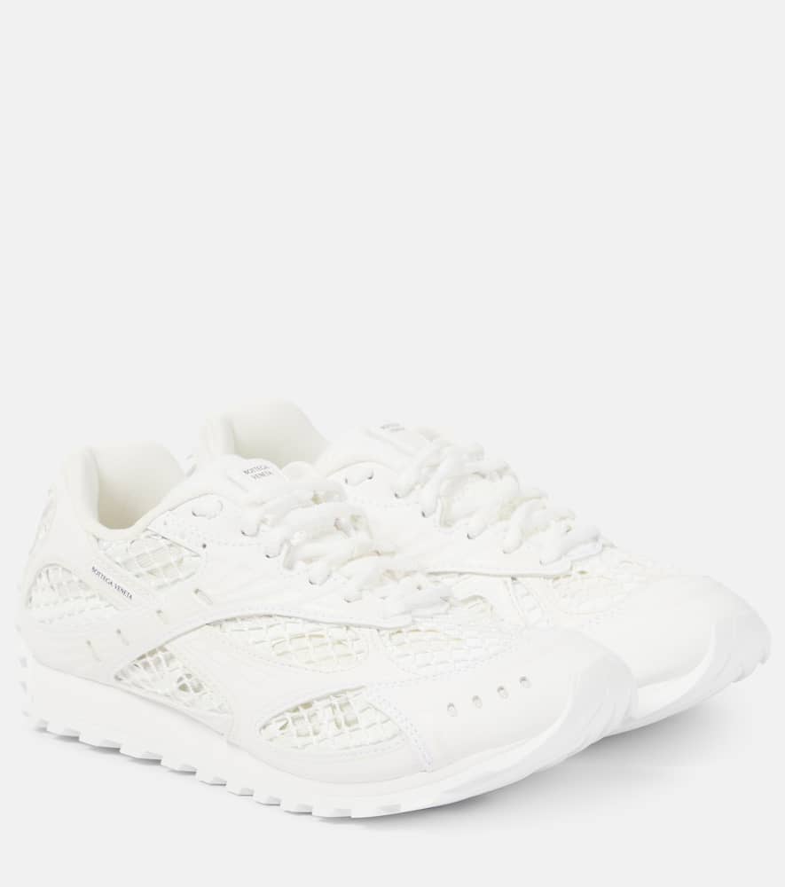 Upper: fabric. Lining: fabric. Sole: fabric insole, rubber sole. Toe shape: almond toe. Made in Italy. Includes: shoe box. Designer color name: White. Trim: leather. Closure: lace-up. Shop the latest Bottega Veneta Low-Top Sneakers for women now.