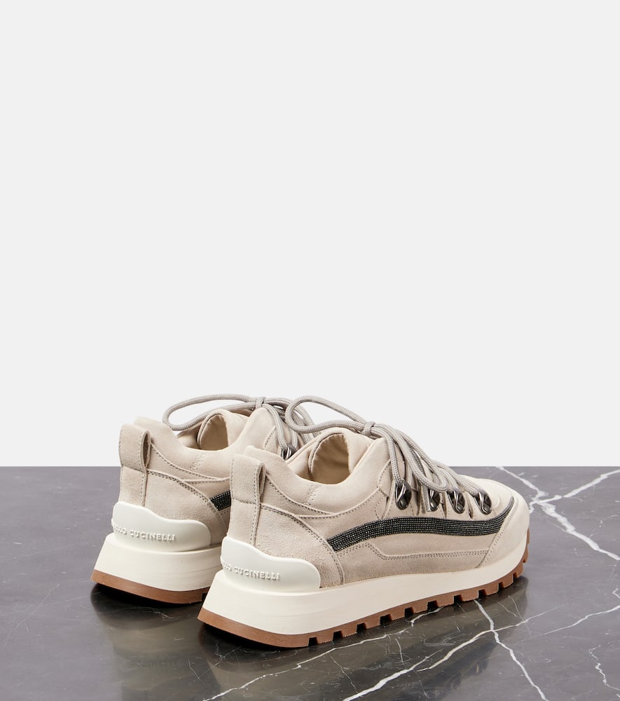 Upper: fabric. Lining: leather. Sole: leather insole and sole. Toe shape: round toe. Made in Italy. Includes: dust bags, shoe box. Designer color name: Quarzo. Closure: lace-up. Shop the latest Brunello Cucinelli Low-Top Sneakers for women now.