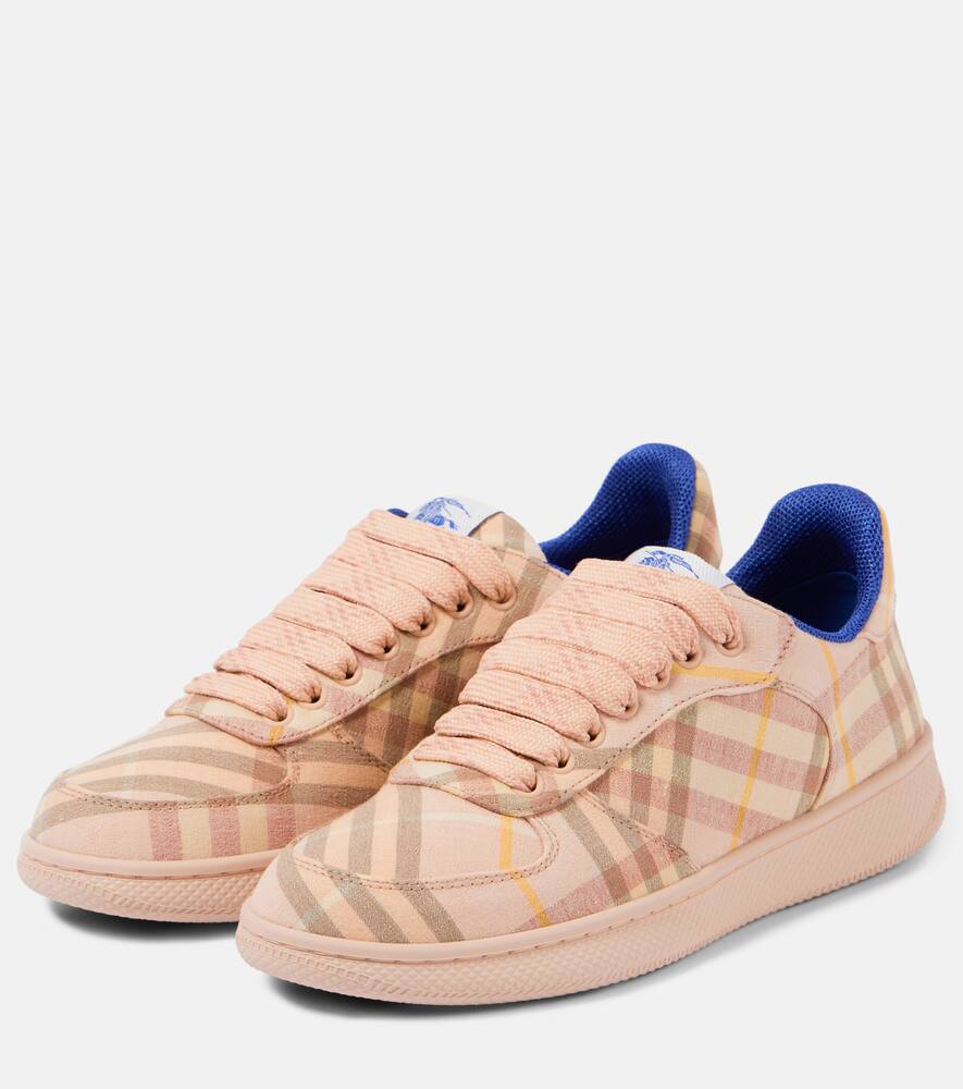 Upper: fabric. Lining: fabric. Sole: leather insole, rubber sole. Toe shape: round toe. Made in Italy. Includes: shoe box, dust bag, extra laces. Designer color name: TEACUP IP CHECK. Shop the latest Burberry Low-Top Sneakers for women now.