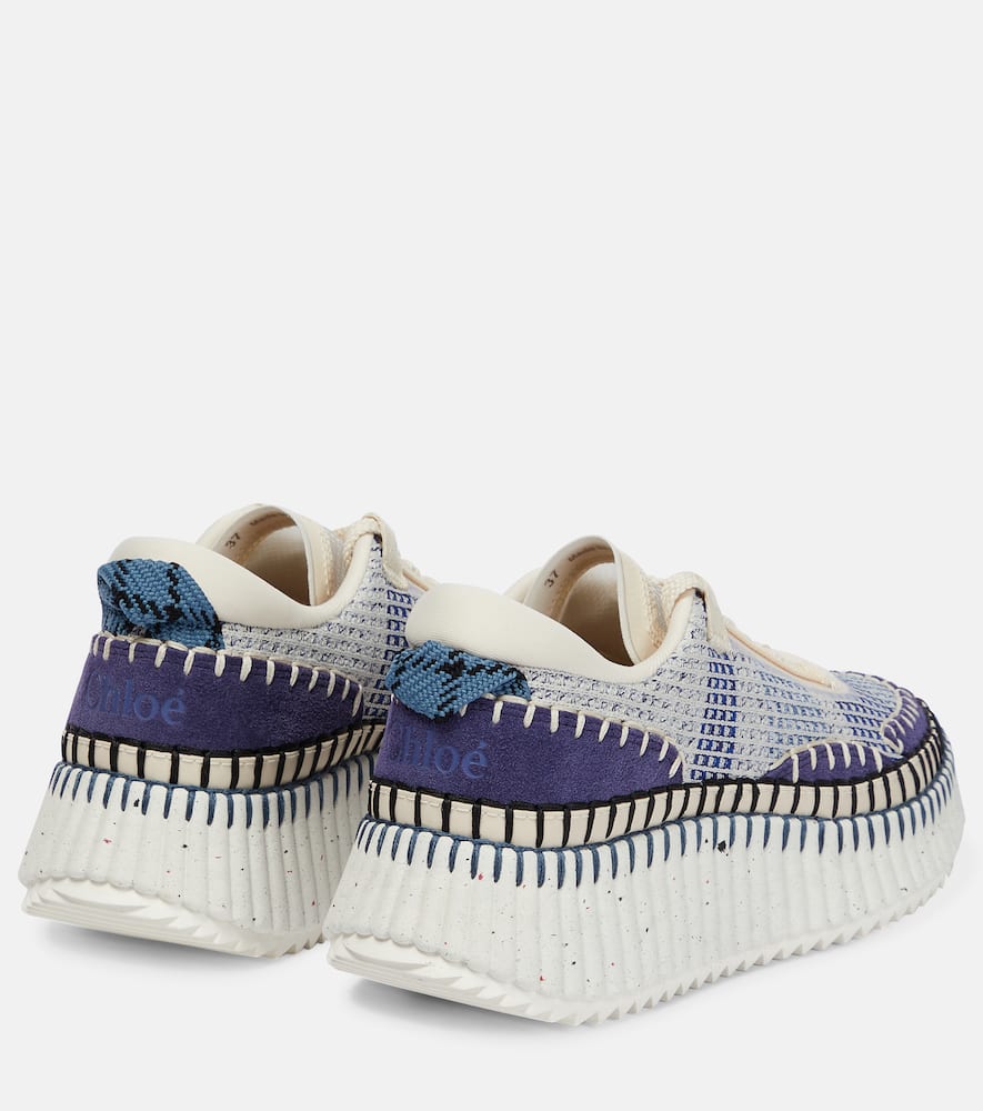 Sole: leather insole, rubber sole. Toe shape: round toe. Trim: leather. Closure: lace-up. Lining: fabric. Designer color name: Cosmic Blue. Comes with a box. Upper: fabric. Made in Vietnam. Comes with dust bags. Shop the latest Chloe Low-Top Sneakers for women now.