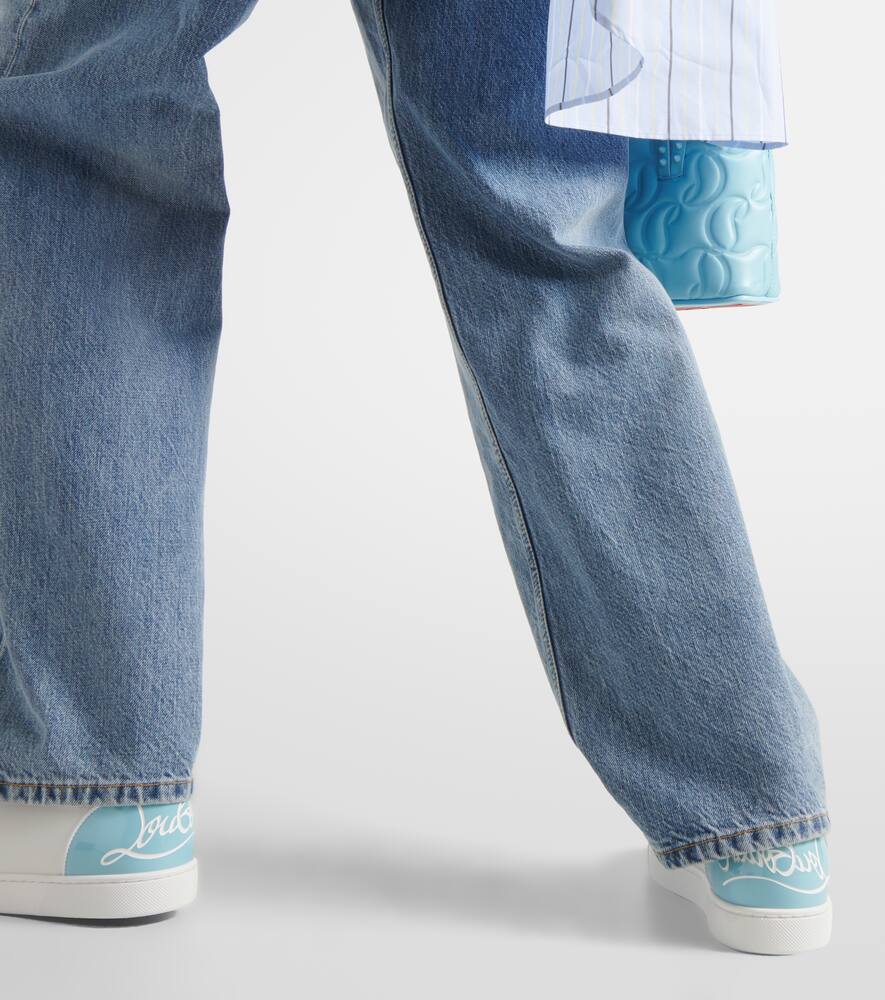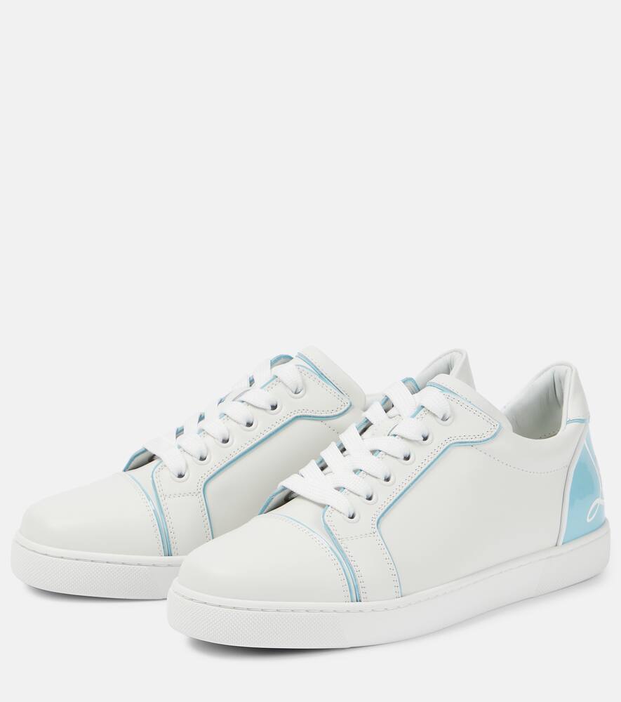 Upper: leather. Lining: leather. Sole: leather insole and sole. Toe shape: round toe. Made in Italy. Includes: shoe box, dust bag, extra laces. Designer color name: Bianco/Mineral. Closure: lace-up. Shop the latest Christian Louboutin Low-Top Sneakers for women now.