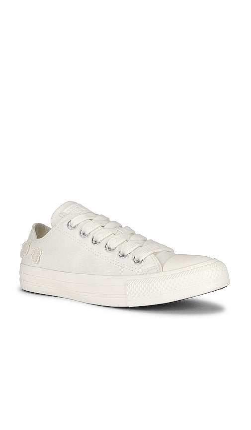 Converse Chuck Taylor All Star Sneaker in Ivory. - size 10 (also in 10.5, 11, 5, 5.5, 7.5, 8, 8.5, 9.5) Converse Chuck Taylor All Star Sneaker in Ivory. - size 10 (also in 10.5, 11, 5, 5.5, 7.5, 8, 8.5, 9.5) Canvas upper with rubber sole. Made in China. Lace-up front. Converse All Star logo at tongue. Tonal floral appliques throughout. Rubber toe cap. CNVR-WZ331. A09102C. Founded in a small town of Massachusetts in 1908, Converse is a classic American brand that has always pushed the boundaries of what a sneaker can do. After basketball player Charles H. Chuck Taylor walked into their sales office in 1921, he persuaded the company to work with him and create a line of comfortable shoes designed purely for basketball. By the 1930s, basketball players throughout America were wearing the All Star silhouette, thanks to the influence of Chuck Taylor. Since then, the iconic sneaker has maintained its appeal even after 100 years, with an influence unlike any other shoe. Shop the latest in fashion from Converse