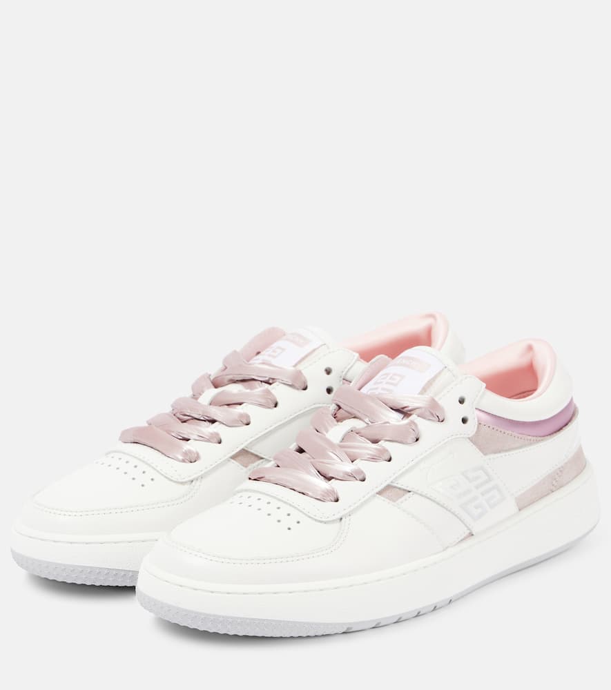 Upper: leather. Lining: fabric. Sole: leather insole, rubber sole. Toe shape: almond toe. Made in Italy. Includes: shoe box, dust bags, extra laces. Designer color name: 149 White/Pink. Closure: lace-up. Shop the latest Givenchy Low-Top Sneakers for women now.