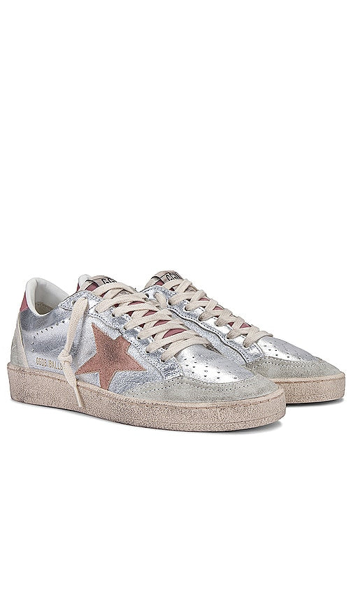 Golden Goose Ballstar Sneaker in Metallic Silver. - size 35 (also in 36, 37, 38, 39, 40) Golden Goose Ballstar Sneaker in Metallic Silver. - size 35 (also in 36, 37, 38, 39, 40) Metallic leather upper with rubber sole. Made in Italy. Lace-up front. Suede star patch at side panels. Golden Goose logo patch at tongue. Leather and French terry lining. Perforated toe. Intentionally scuffed and distressed. GGOR-WZ581. GWF00117.F005377.70289. From Italy to the skateparks of Los Angeles, Golden Goose has become a world-renowned high fashion brand for luxury sneakers. Hand crafted on premium Italian leather; Golden Goose has successfully combined the relaxed vintage aesthetic with their unique 'lived in' touch. Their signature pre-scuffed style (each distressed by hand) offers a nonchalant attitude that embodies 'perfect imperfection' for a touch of life, comfort and fashion forward designs. Shop the latest in fashion from Golden Goose