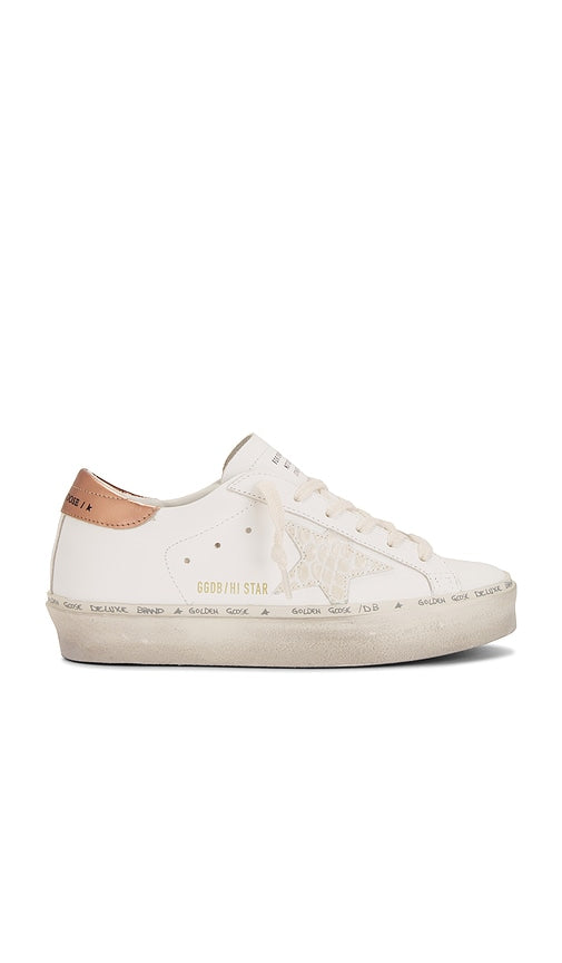 Leather upper with rubbed sole. Made in Italy. Lace-up front. Croc embossed leather star patch at outer side panels. Leather and French terry lining. Padded low-cut collar with Golden Goose logo at back counter. Intentionally scuffed and distressed. Approx 32mm/ 1.25 inch platform. GGOR-WZ623. GWF00118.F006186.11932. From Italy to the skateparks of Los Angeles, Golden Goose has become a world-renowned high fashion brand for luxury sneakers. Hand crafted on premium Italian leather; Golden Goose has successfully combined the relaxed vintage aesthetic with their unique 'lived in' touch. Their signature pre-scuffed style (each distressed by hand) offers a nonchalant attitude that embodies 'perfect imperfection' for a touch of life, comfort and fashion forward designs. Color: White Butter & Bronze. Shop White Butter & Bronze Lifestyle Sneakers for women and the latest Golden Goose shoes now.