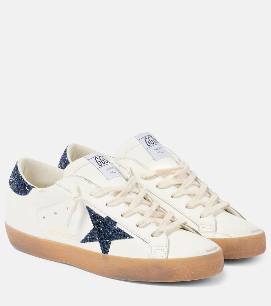 Upper: leather. Lining: fabric. Sole: leather insole, rubber sole. Toe shape: almond toe. Made in Italy. Includes: shoe box, dust bag. Designer color name: White/Blue. Closure: lace-up. Shop the latest Golden Goose Low-Top Sneakers for women now.