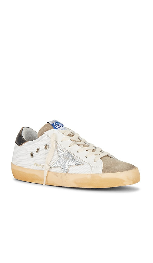Golden Goose Super-Star Sneaker in White. - size 35 (also in 36, 37, 38, 39, 40) Golden Goose Super-Star Sneaker in White. - size 35 (also in 36, 37, 38, 39, 40) Leather, textile and suede upper with manmade sole. Made in Italy. Lace-up front. Signature star accent in silver-tone foil. Intentionally scuffed heel tab. Medial eyelets enhance airflow. Terrycloth lining. GGOR-WZ424. GWF00101.F003188.81772. From Italy to the skateparks of Los Angeles, Golden Goose has become a world-renowned high fashion brand for luxury sneakers. Hand crafted on premium Italian leather; Golden Goose has successfully combined the relaxed vintage aesthetic with their unique 'lived in' touch. Their signature pre-scuffed style (each distressed by hand) offers a nonchalant attitude that embodies 'perfect imperfection' for a touch of life, comfort and fashion forward designs. Shop the latest in fashion from Golden Goose