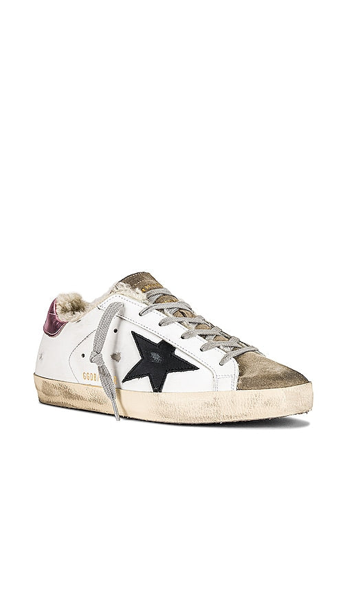 Golden Goose Super-Star Sneaker in White. - size 35 (also in 36, 37, 38, 39, 40) Golden Goose Super-Star Sneaker in White. - size 35 (also in 36, 37, 38, 39, 40) Scuffed leather upper with rubber sole. Made in Italy. Fur Origin: Turkey. Lace-up front. Shearling lining. Intentionally distressed throughout. GGOR-WZ461. GWF00101.F003157.11165. From Italy to the skateparks of Los Angeles, Golden Goose has become a world-renowned high fashion brand for luxury sneakers. Hand crafted on premium Italian leather; Golden Goose has successfully combined the relaxed vintage aesthetic with their unique 'lived in' touch. Their signature pre-scuffed style (each distressed by hand) offers a nonchalant attitude that embodies 'perfect imperfection' for a touch of life, comfort and fashion forward designs. Shop the latest in fashion from Golden Goose