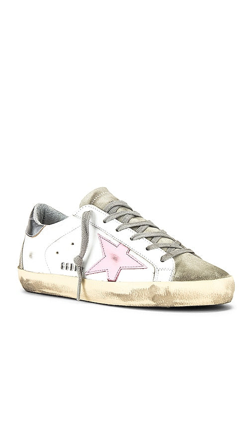 Golden Goose Superstar Sneaker in White. - size 35 (also in 36, 37, 38, 39, 40) Golden Goose Superstar Sneaker in White. - size 35 (also in 36, 37, 38, 39, 40) Leather upper with rubber sole. Made in Italy. Lace-up front. Suede toe cap and tongue. Leather and french terry lining. Intentionally distressed detail. Metallic heel with debossed logo detail. GGOR-WZ348. GWF00102.F002435.81482. From Italy to the skateparks of Los Angeles, Golden Goose has become a world-renowned high fashion brand for luxury sneakers. Hand crafted on premium Italian leather; Golden Goose has successfully combined the relaxed vintage aesthetic with their unique 'lived in' touch. Their signature pre-scuffed style (each distressed by hand) offers a nonchalant attitude that embodies 'perfect imperfection' for a touch of life, comfort and fashion forward designs. Shop the latest in fashion from Golden Goose