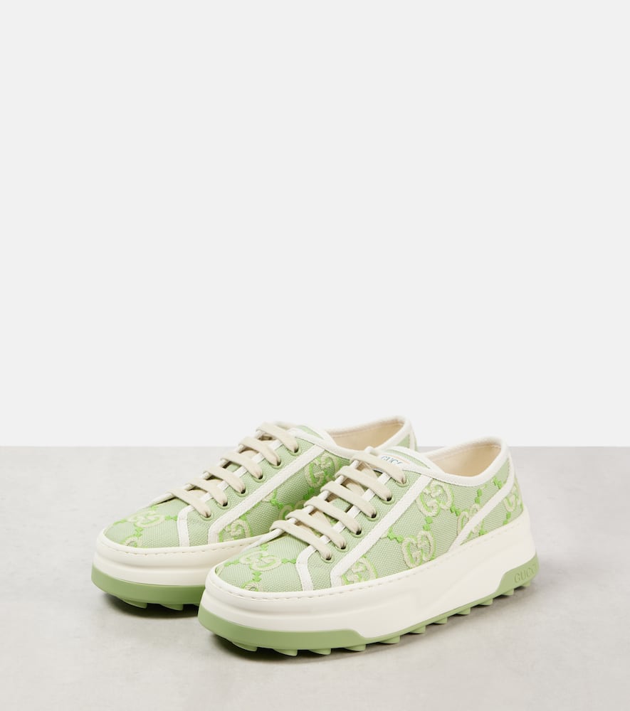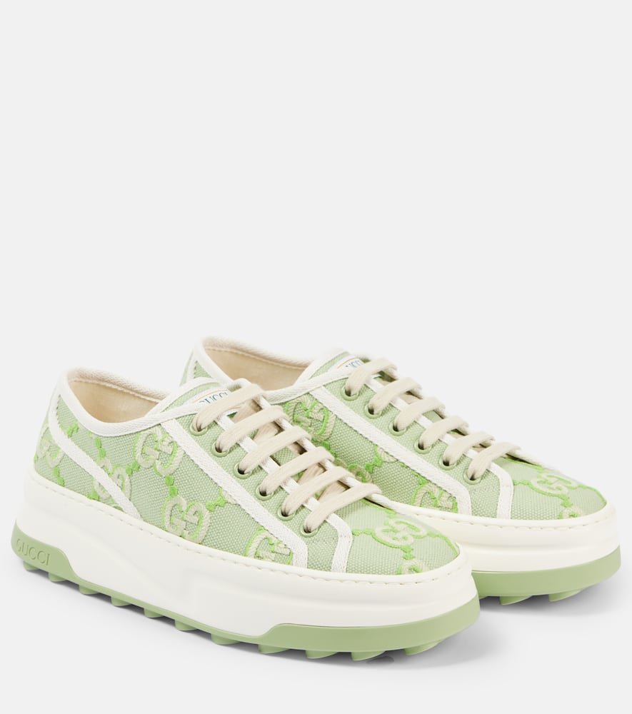 Upper: fabric. Lining: fabric. Sole: fabric insole, rubber sole. Toe shape: almond toe. Made in Italy. Includes: shoe box, dust bags, extra laces. Designer color name: Sa.le/My.Wh/Sa.le. Closure: lace-up. Hardware color: green. Shop the latest Gucci Low-Top Sneakers for women now.