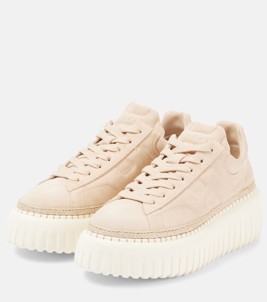 Upper: leather. Lining: fabric. Sole: fabric insole, rubber sole. Toe shape: almond toe. Made in Italy. Includes: shoe box, dust bag, extra laces. Designer color name: Conchiglia. Closure: lace-up. Shop the latest Hogan Low-Top Sneakers for women now.