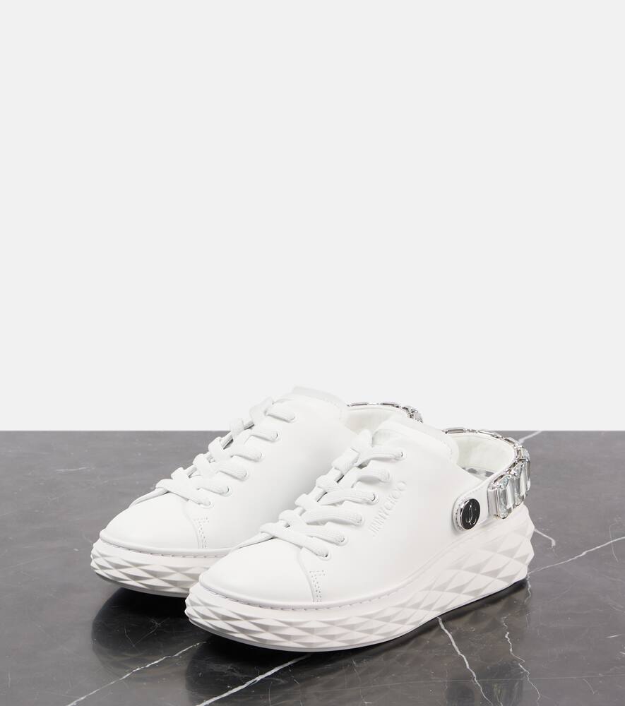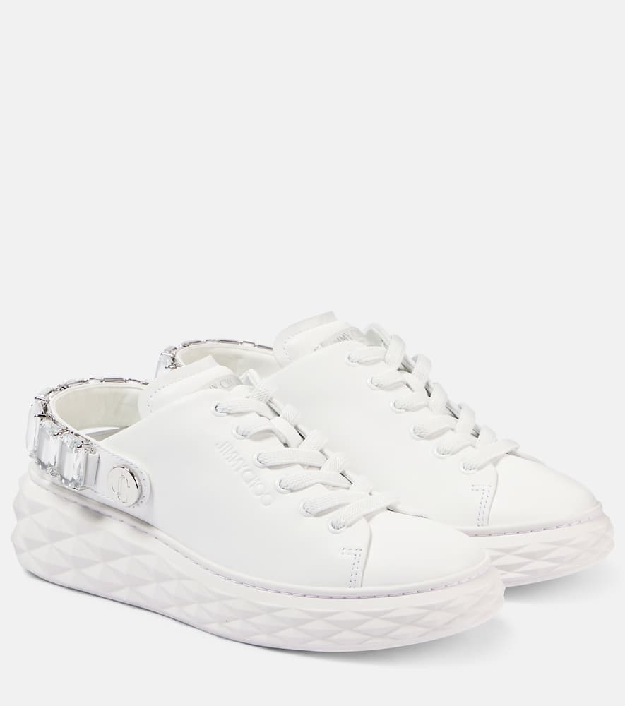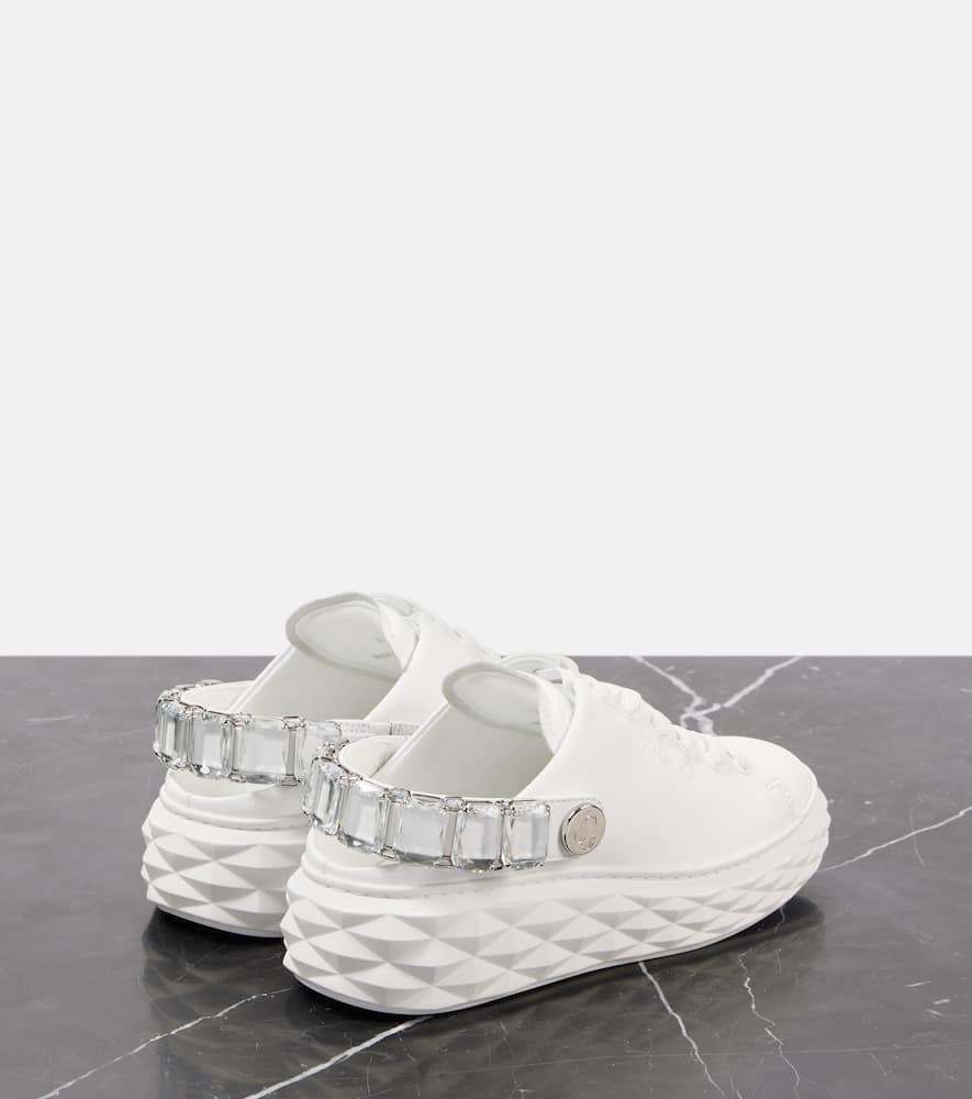 Upper: leather. Lining: fabric. Sole: leather insole, rubber sole. Toe shape: almond toe. Made in Vietnam. Includes: shoe box, dust bag. Designer color name: V White/Crystal. Trim: rubber. Closure: lace-up. Hardware color: silver. Shop the latest Jimmy Choo Low-Top Sneakers for women now.