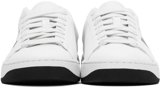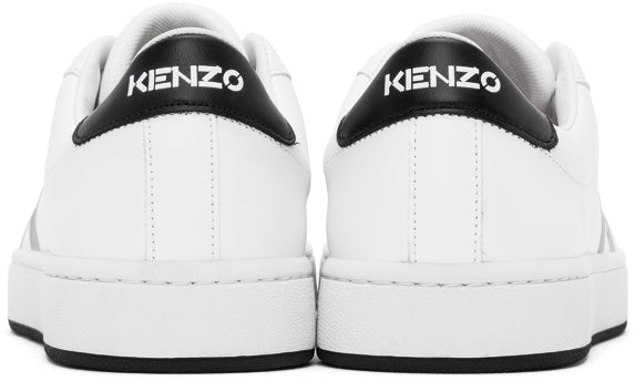 Low-top buffed nappa leather sneakers in white. Round toe. Lace-up closure. Padded tongue. Padded collar. Buffed leather heel tab in black with tonal logo stamp. Printed logo in black at outer side. Tonal crepe rubber midsole. Treaded rubber outsole in black. Supplier color: White Upper: leather. Sole: rubber. Brand: Kenzo