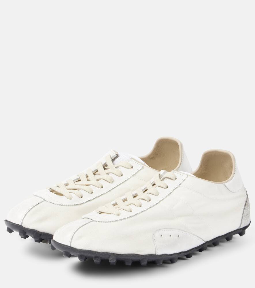 Upper: fabric. Lining: fabric. Sole: fabric insole, rubber sole. Toe shape: round toe. Made in Italy. Includes: shoe box, dust bags. Designer color name: White/White/Birch White. Closure: lace-up. Trim: leather. Shop the latest Maison Margiela Low-Top Sneakers for women now.