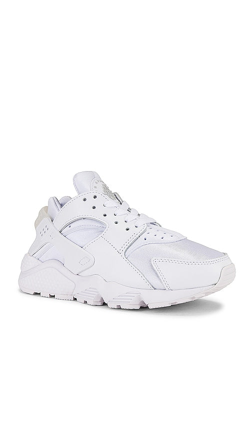 Nike Air Huarache Sneaker in White. - size 6 (also in 5, 5.5, 6.5, 7) Nike Air Huarache Sneaker in White. - size 6 (also in 5, 5.5, 6.5, 7) Leather and textile upper with rubber sole. Made in China. Lace-up front. Perforated detail. Low-cut collar. Cushioned inner sleeve. Huarache emblem on tongue. Signature heel clip. NIKR-WZ567. DH4439-102. Centered around humanity and athletic innovations, Nike believes that if you have a body, you are an athlete. From footwear to an incredible variety of clothing, Nike is about enhancing performance while looking and feeling your best. Many of their shoe styles have become rare collector's items because of their limited quantity and unique, yet classic design. Their-performance focused technologies have revolutionized athletic wear, while their exclusive fabrics such as Dri-Fit, AeroReact, and Storm-Fit highlight both function and aesthetics. Beyond apparel, Nike invests in the power of people, planet, and play with practices that seek to better serve the environment and support women in the workforce. Shop the latest in fashion from Nike