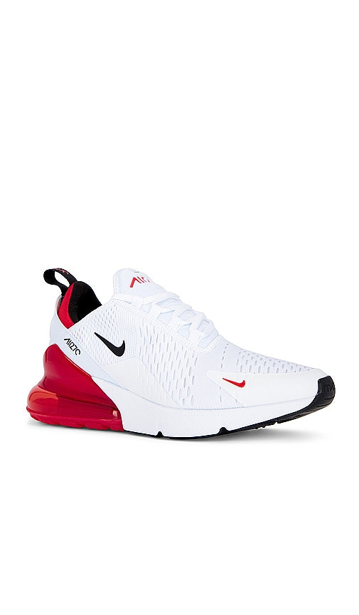 Nike Air Max 270 Sneaker in Red. - size 10 (also in 10.5, 11, 7, 7.5) Nike Air Max 270 Sneaker in Red. - size 10 (also in 10.5, 11, 7, 7.5) Mesh upper with rubber sole. Made in Vietnam. Lace-up front. Max Air 270 unit delivers unrivaled all-day comfort. Foam midsole feels soft and comfortable. The stretchy inner sleeve and booty-like construction creates a personalized fit. Back pull-tab. NIKR-MZ667. BV2523-100. Centered around humanity and athletic innovations, Nike believes that if you have a body, you are an athlete. From footwear to an incredible variety of clothing, Nike is about enhancing performance while looking and feeling your best. Many of their shoe styles have become rare collector?s items because of their limited quantity and unique, yet classic design. Their-performance focused technologies have revolutionized athletic wear, while their exclusive fabrics such as Dri-Fit, AeroReact, and Storm-Fit highlight both function and aesthetics. Beyond apparel, Nike invests in the power of people, planet, and play with practices that seek to better serve the environment and support women in the workforce. Shop the latest in fashion from Nike