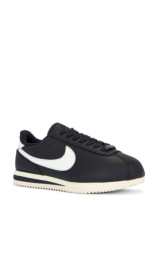 Nike Cortez 23 Premium Sneaker in Black. - size 6 (also in 6.5, 7, 8.5, 9) Nike Cortez 23 Premium Sneaker in Black. - size 6 (also in 6.5, 7, 8.5, 9) Leather upper with rubber sole. Made in Indonesia. Lace-up front. Contrast patent leather Swooshes at side panels. Lightly padded tongue with tonal Nike logo embroidery. Padded low-cut collar with contrast embossed Nike logo at back counter. NIKR-WZ1005. FB6877-001. Centered around humanity and athletic innovations, Nike believes that if you have a body, you are an athlete. From footwear to an incredible variety of clothing, Nike is about enhancing performance while looking and feeling your best. Many of their shoe styles have become rare collector?s items because of their limited quantity and unique, yet classic design. Their-performance focused technologies have revolutionized athletic wear, while their exclusive fabrics such as Dri-Fit, AeroReact, and Storm-Fit highlight both function and aesthetics. Beyond apparel, Nike invests in the power of people, planet, and play with practices that seek to better serve the environment and support women in the workforce. Shop the latest in fashion from Nike