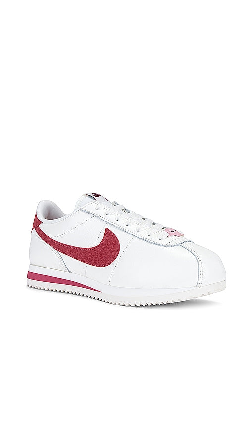 Nike Cortez SE Sneaker in Ivory. - size 5 (also in 6, 7, 7.5, 8, 8.5, 9) Nike Cortez SE Sneaker in Ivory. - size 5 (also in 6, 7, 7.5, 8, 8.5, 9) Leather upper with suede trim and rubber sole. Made in Indonesia. Lace-up front with Nike heart charm at laces. Suede Swooshes at side panels. Nike logo patch at tongue. Padded low-cut collar with novelty heart Swoosh at back counter. NIKR-WZ1025. FZ5167-133. Centered around humanity and athletic innovations, Nike believes that if you have a body, you are an athlete. From footwear to an incredible variety of clothing, Nike is about enhancing performance while looking and feeling your best. Many of their shoe styles have become rare collector?s items because of their limited quantity and unique, yet classic design. Their-performance focused technologies have revolutionized athletic wear, while their exclusive fabrics such as Dri-Fit, AeroReact, and Storm-Fit highlight both function and aesthetics. Beyond apparel, Nike invests in the power of people, planet, and play with practices that seek to better serve the environment and support women in the workforce. Shop the latest in fashion from Nike