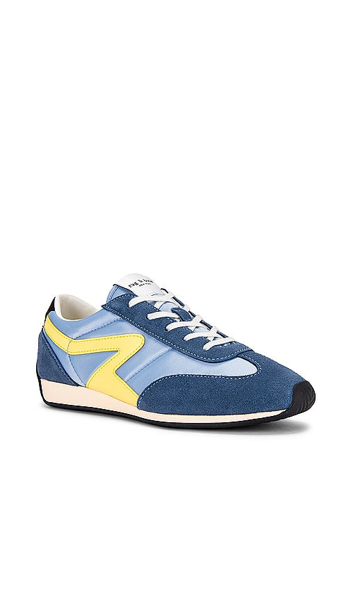 Rag & Bone Retro Slim Runner in Blue. - size 36 (also in 37, 37.5, 38, 39.5, 40) Rag & Bone Retro Slim Runner in Blue. - size 36 (also in 37, 37.5, 38, 39.5, 40) Nylon, leather, and suede upper with rubber sole. Made in Vietnam. Lace-up front. Rag & Bone logo patch at tongue. Lightly padded collar with leather trim. RGBR-WZ282. WFF24SF012TY12. rag & bone is rooted in a dedication to craftsmanship, innovation and timeless style. Each collection is designed in New York and developed through the time-honored techniques of some of the oldest and most supremely skilled manufacturers from around the world. Since the brand's origins in 2002 the focus has been, and always remains, on creating the highest quality goods. Shop the latest in fashion from Rag & Bone