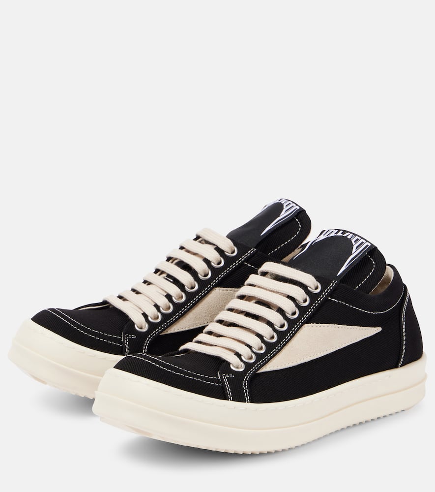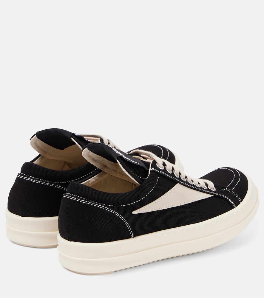 Upper: fabric. Lining: fabric. Sole: leather insole, rubber sole. Toe shape: round toe. Made in Italy. Includes: shoe box, dust bag. Designer color name: Black/ Milk/ Milk. Closure: lace-up. Trim: leather. Shop the latest Rick Owens Low-Top Sneakers for women now.