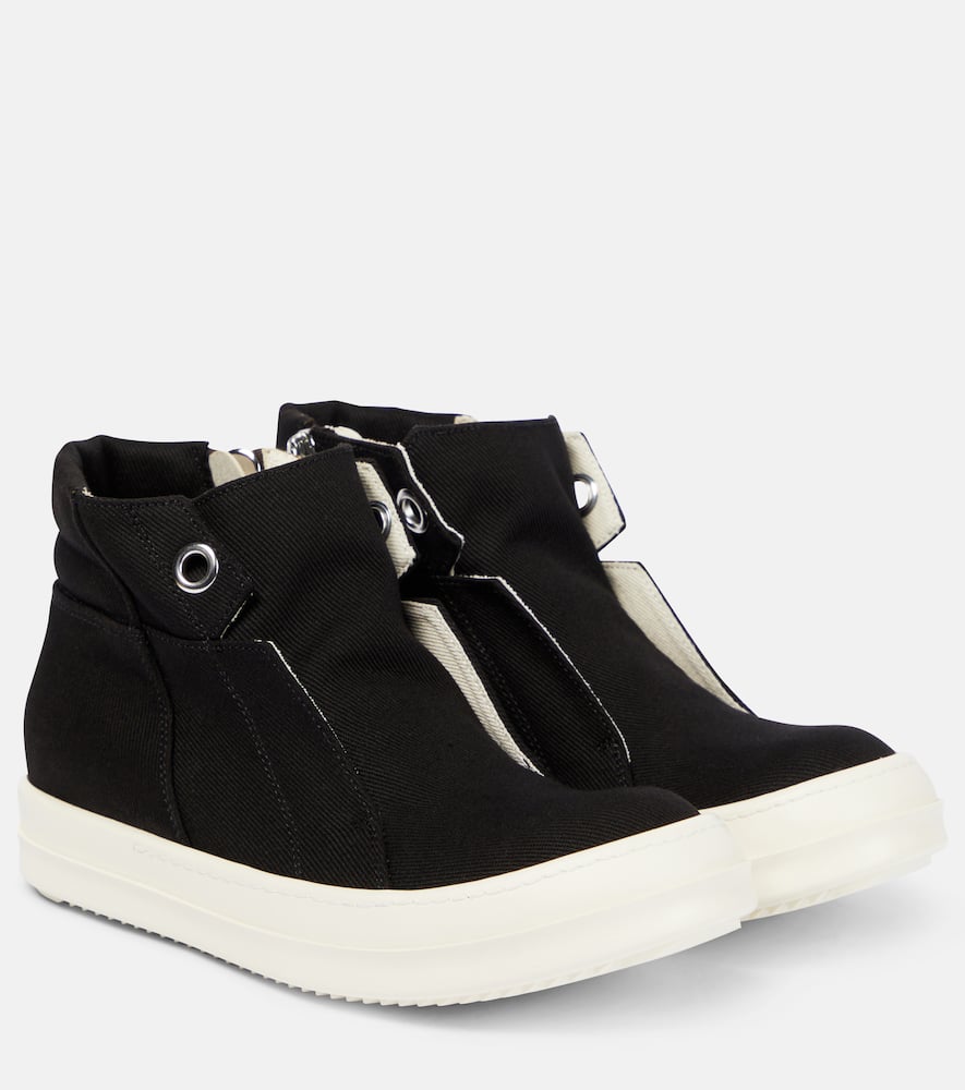 Upper: fabric. Lining: fabric. Sole: leather insole, rubber sole. Toe shape: round toe. Made in Italy. Designer color name: Black/Milk. Closure: zipped side. Comes with a box. Comes with dust bag. Shop the latest Rick Owens High-Top Sneakers for women now.