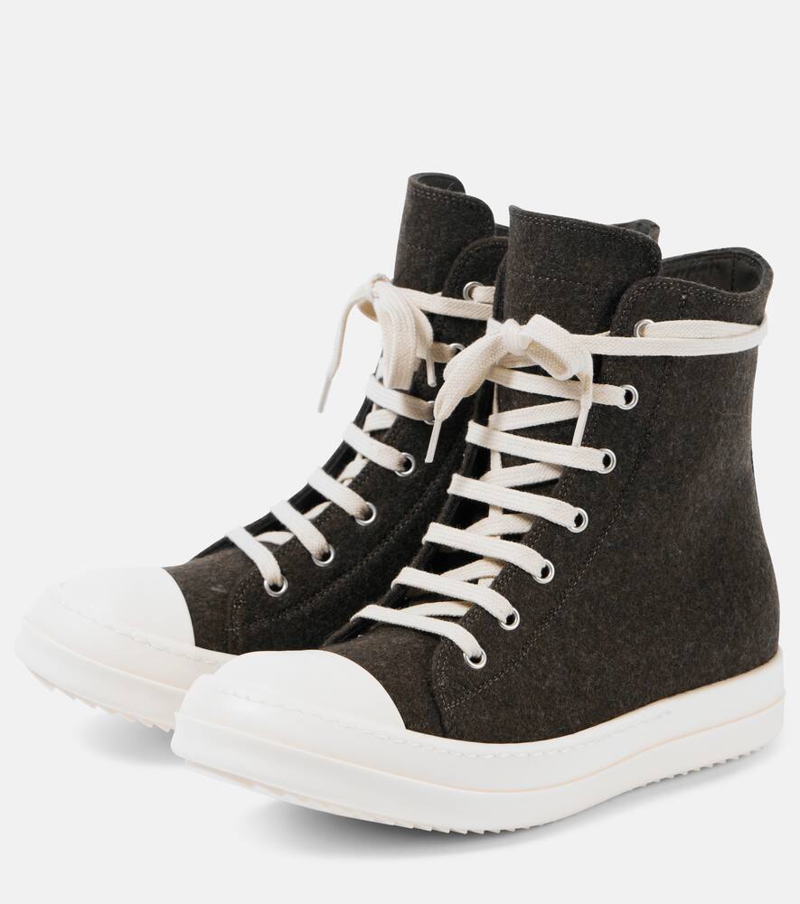 Upper: fabric. Lining: leather. Sole: leather insole, rubber sole. Toe shape: almond toe. Made in Italy. Includes: shoe box, dust bag, extra laces. Designer color name: Brown/Milk/Milk. Closure: zipped side, lace-up. Shop the latest Rick Owens High-Top Sneakers for women now.