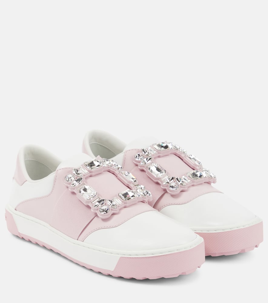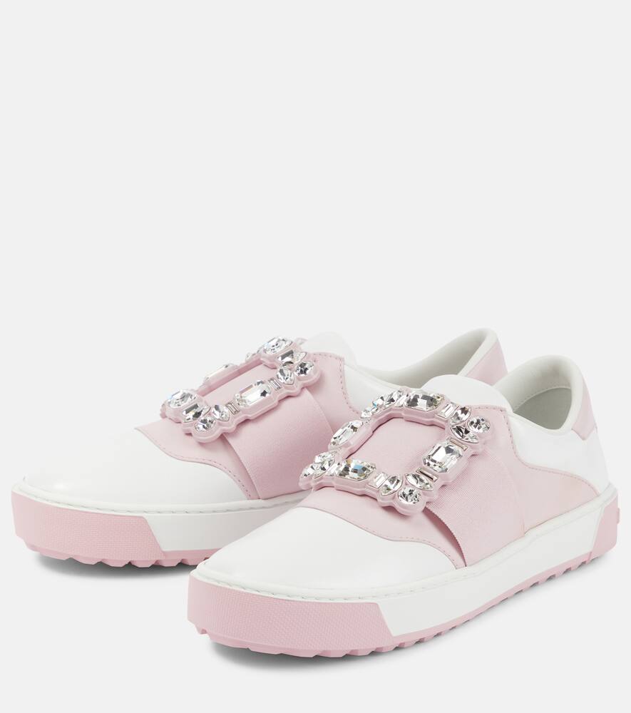 Sole: leather insole, rubber sole. Trim: fabric. Comes with a box. Upper: leather. Designer color name: B001(Bianco)+M422(Rosa Lotus). Made in Italy. Comes with dust bag. Toe shape: round toe. Shop the latest Roger Vivier Low-Top Sneakers for women now.