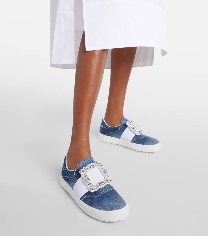 Upper: fabric. Lining: leather. Sole: leather insole, rubber sole. Toe shape: round toe. Made in Italy. Includes: shoe box, dust bag. Designer color name: Baltic Chiaro. Shop the latest Roger Vivier Low-Top Sneakers for women now.