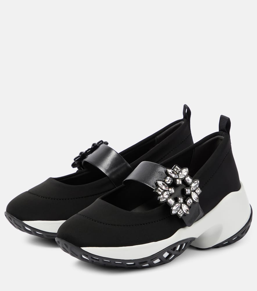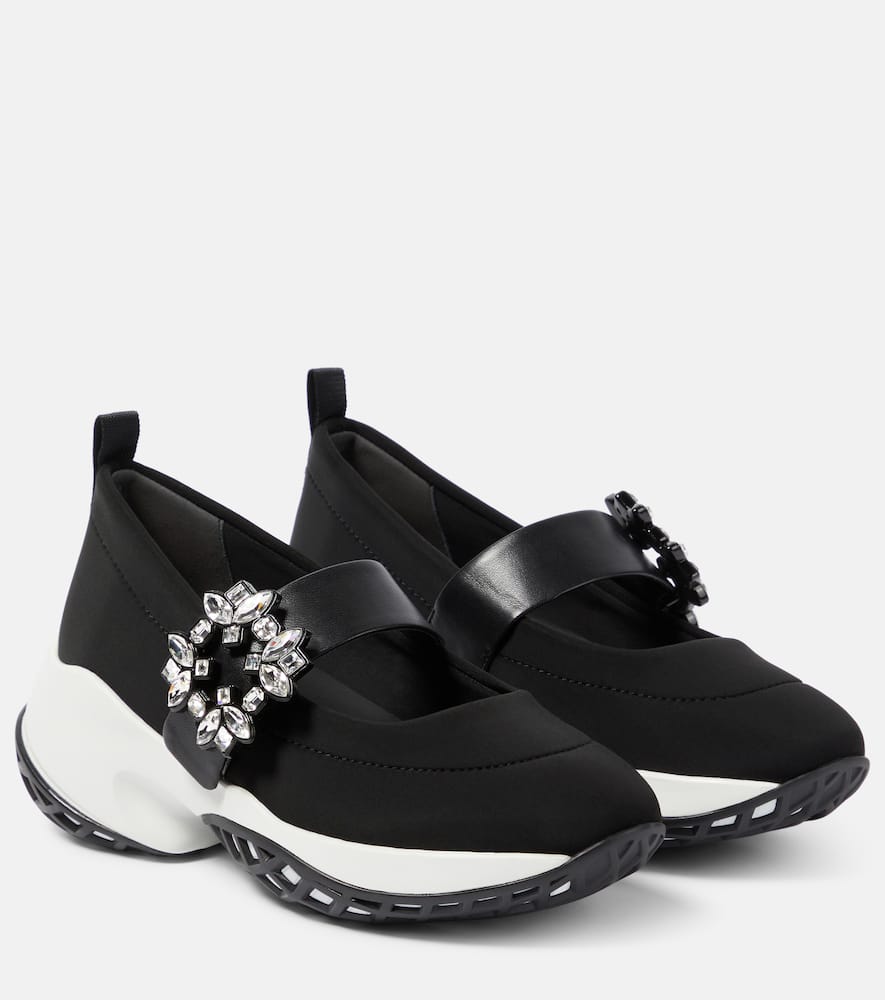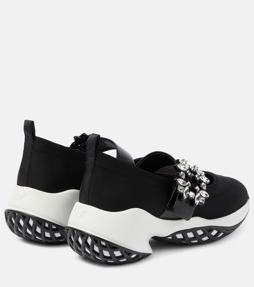 Upper: fabric. Lining: fabric. Sole: fabric insole, rubber sole. Toe shape: round toe. Made in Italy. Includes: shoe box, dust bag. Designer color name: Nero. Trim: leather. Shop the latest Roger Vivier Low-Top Sneakers for women now.