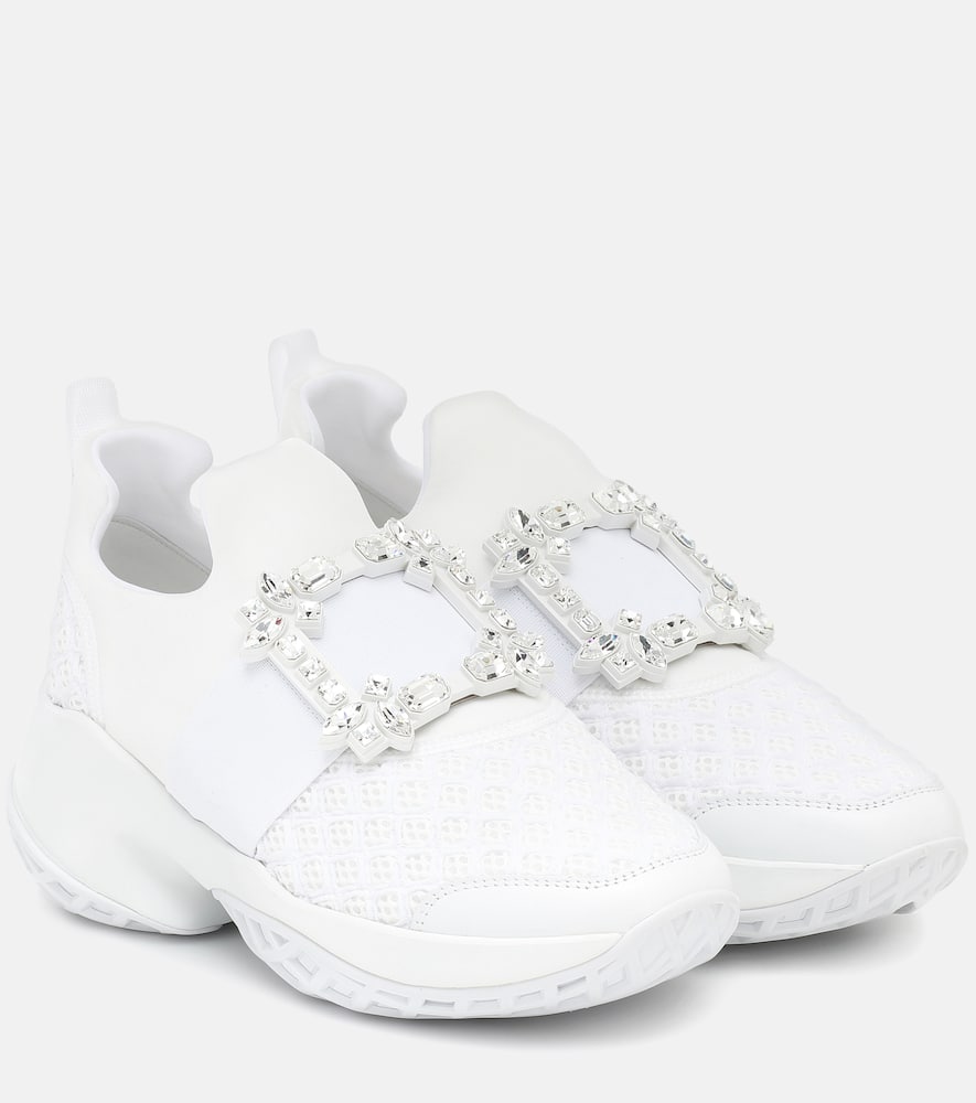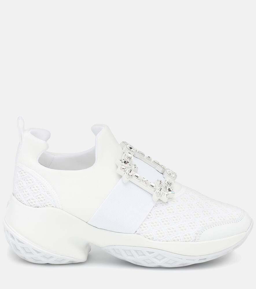 Upper: fabric. Lining: leather, fabric. Sole: leather insole, rubber sole. Toe shape: round toe. Made in Italy. Includes: shoe box. Designer color name: Bianco. Trim: leather. Shop the latest Roger Vivier Low-Top Sneakers for women now.