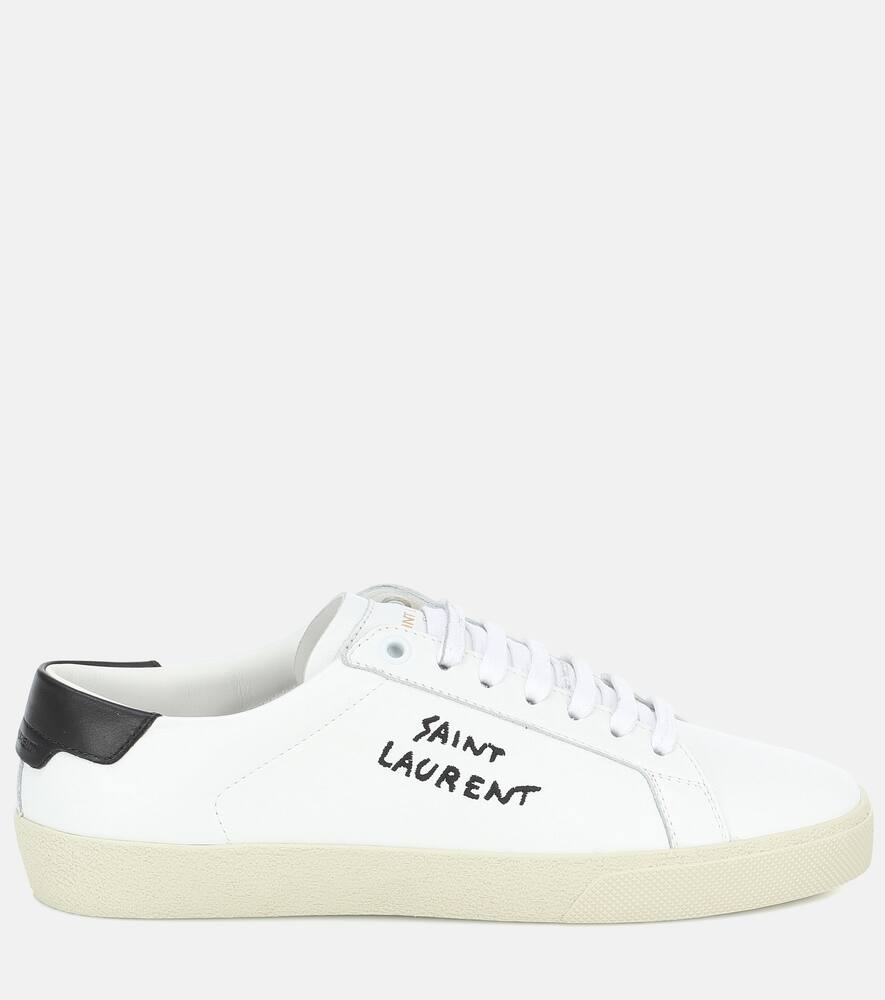 Sole: leather insole, rubber sole. Toe shape: round toe. Upper: calf leather. Lining: calf leather. Closure: lace-up. Designer color name: Blanc Optique/ Noir (Noir). Made in Italy. Shop the latest Saint Laurent Low-Top Sneakers for women now.