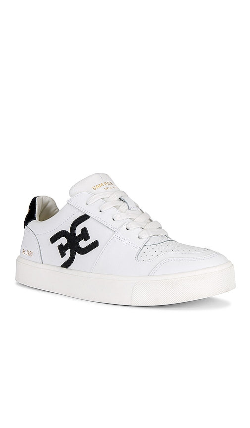 Sam Edelman Ellie Sneaker in White. - size 10 (also in 6, 6.5, 7, 7.5, 8, 8.5, 9, 9.5) Sam Edelman Ellie Sneaker in White. - size 10 (also in 6, 6.5, 7, 7.5, 8, 8.5, 9, 9.5) Leather blend upper with rubber sole. Made in Vietnam. Lace-up front. Contrast Sam Edelman logo at side panels. Gold-tone Sam Edelman logo at tongue. Contrast suede back counter with Sam Edelman logo. Perforated toe. SAME-WZ1068. I9600M1900. Sam Edelman is a lifestyle brand devoted to a trend-on, irreverent and whimsical style. Inspired by timeless American elegance, the brand offers a unique selection of iconic and contemporary fashion that bridges the gap between aspiration and attainability to define modern luxury. Shop the latest in fashion from Sam Edelman
