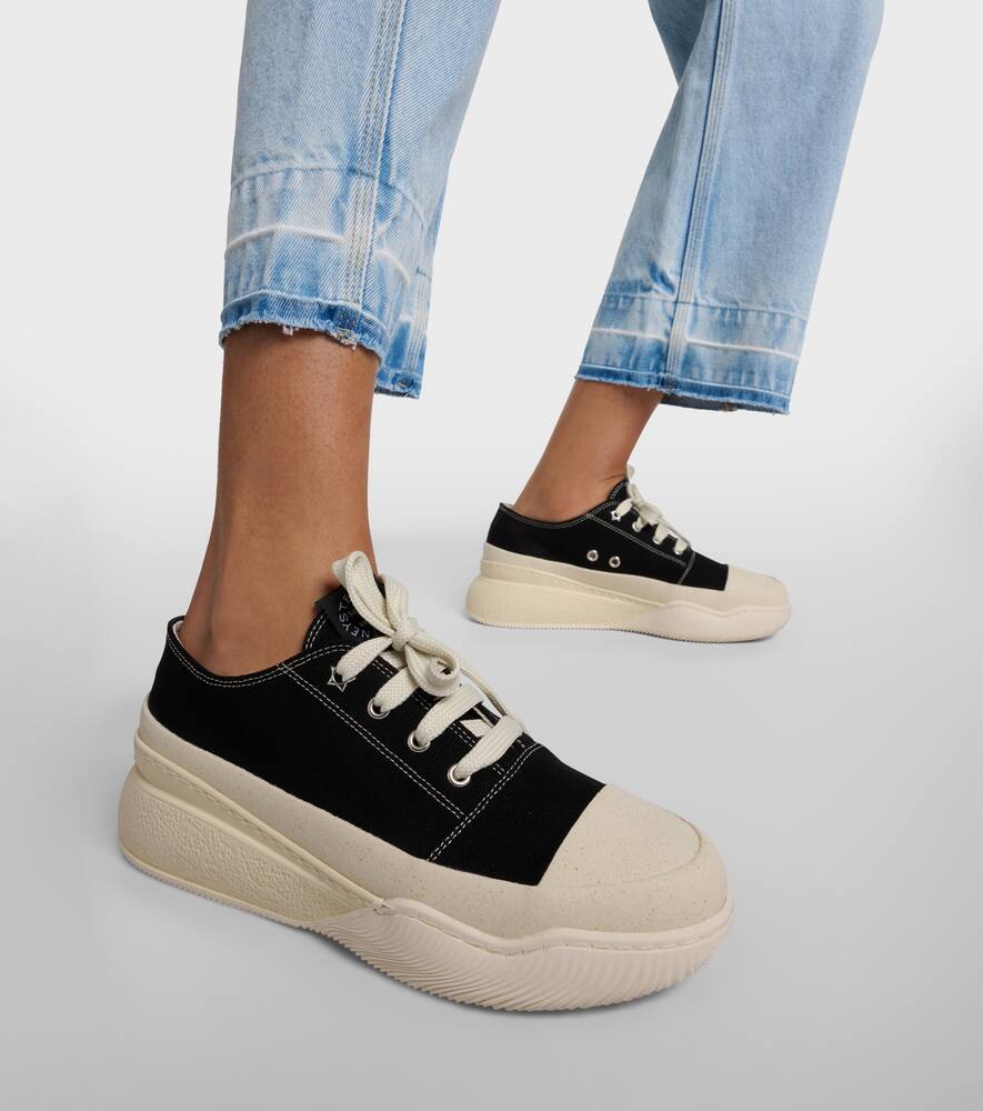 Upper: fabric. Lining: fabric. Sole: fabric insole, rubber sole. Toe shape: round toe. Made in Spain. Includes: dust bag, extra laces, shoe box. Designer color name: Black/White. Closure: lace-up. Shop the latest Stella McCartney Low-Top Sneakers for women now.