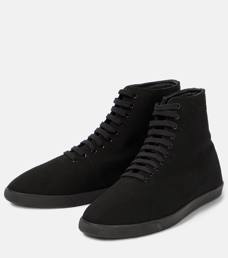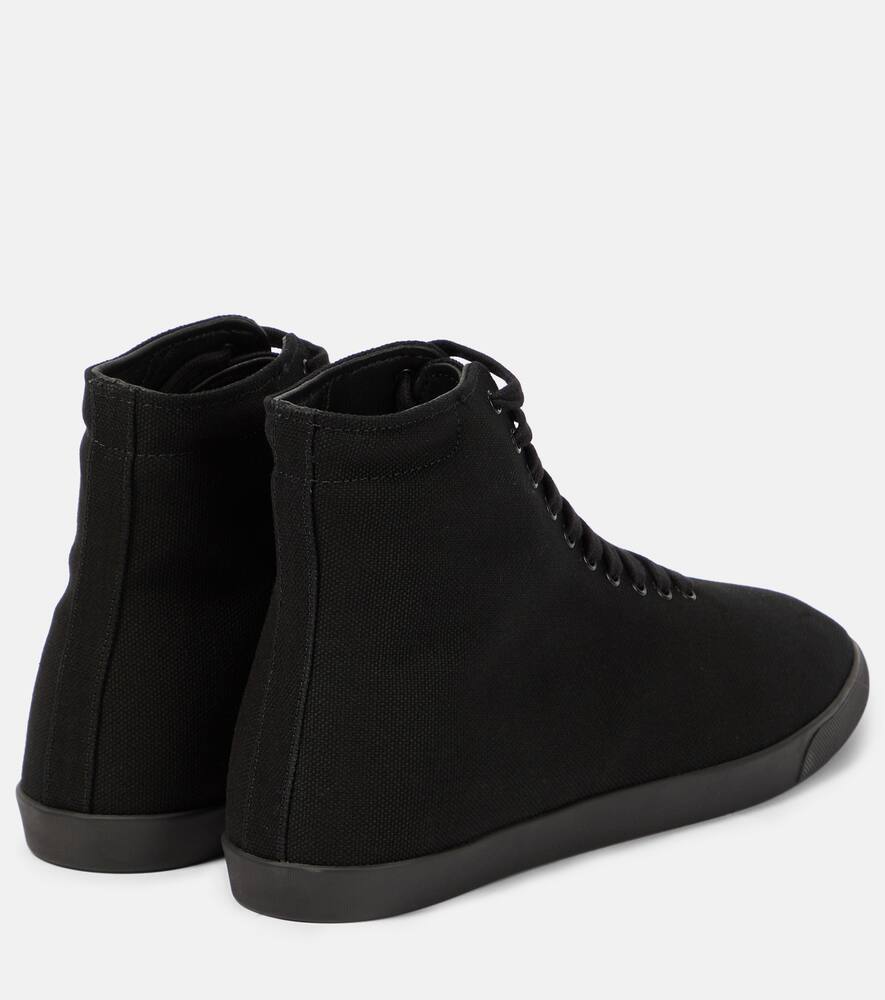 Upper: fabric. Lining: fabric. Sole: fabric insole, rubber sole. Toe shape: round toe. Made in Italy. Includes: dust bags. Designer color name: Black/Fume. Closure: lace-up. Shop the latest The Row High-Top Sneakers for women now.