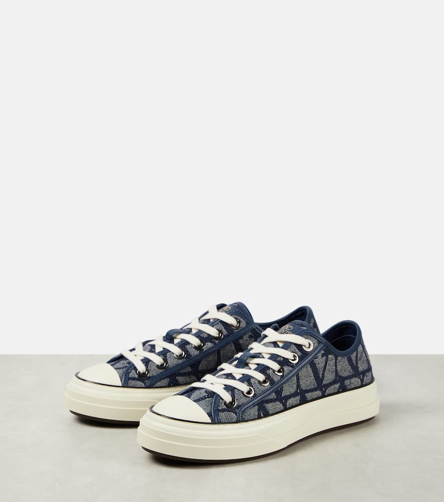 Upper: fabric. Lining: fabric. Sole: rubber insole and sole. Toe shape: round toe. Made in Italy. Includes: shoe box, dust bag, extra laces. Designer color name: Melange Denim/ Worker. Shop the latest Valentino Garavani Low-Top Sneakers for women now.