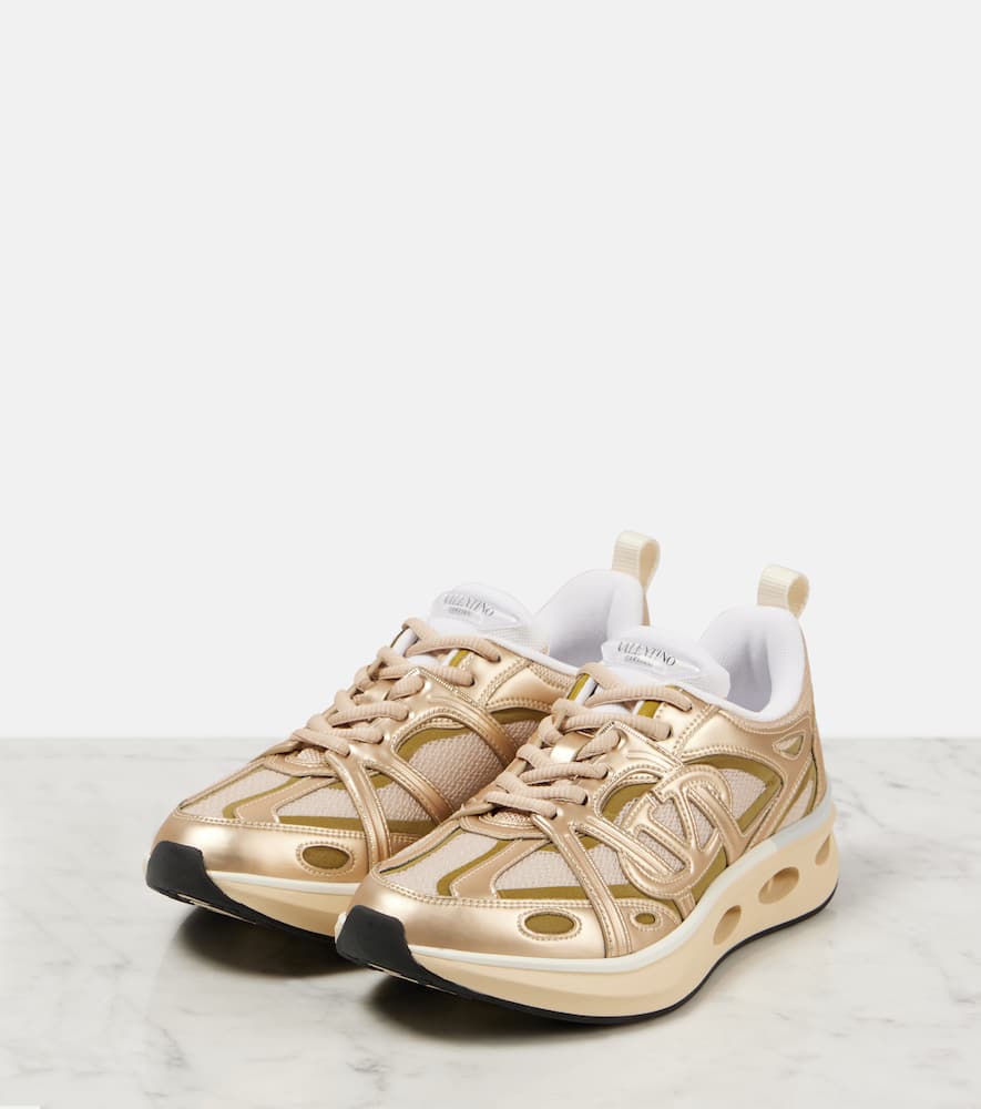 Upper: faux leather. Lining: fabric. Sole: fabric insole, rubber sole. Toe shape: almond toe. Made in Italy. Includes: shoe box, dust bags, extra laces. Designer color name: Platino/L.Taupe/Bianco/Oro. Trim: sheep leather, fabric. Closure: lace-up. Shop the latest Valentino Garavani Low-Top Sneakers for women now.