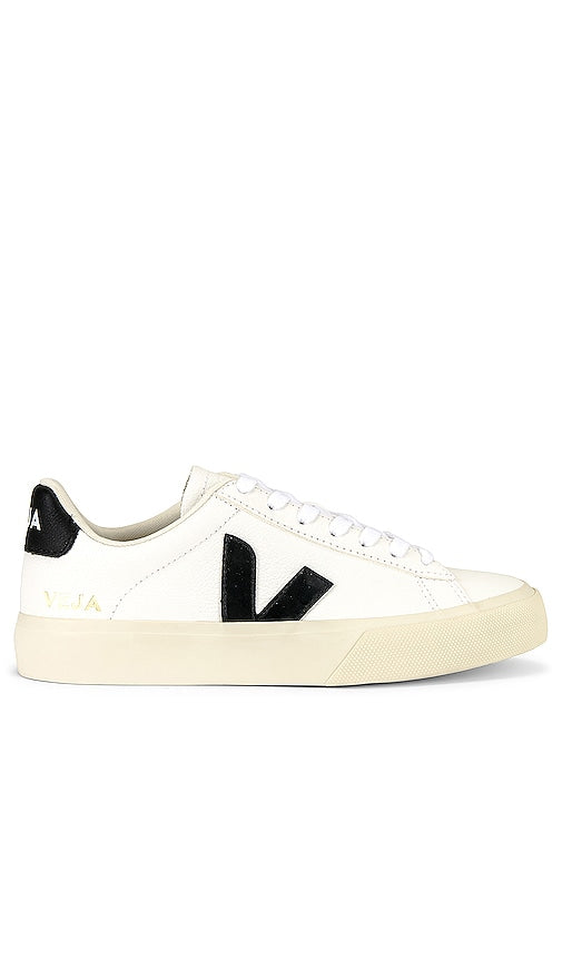 Grained leather upper with Amazonian rubber sole. Made in Brazil. Lace-up front. Padded collar. Rubber V logo at sides. Contrasted back counter with Veja logo print. Debossed gold-tone Veja logo at outer side. VEJA-WZ38. CP0501537A350. Parisian based and Brazilian produced, sustainable sneaker brand Veja creates organic, innovative collections sourced from South America. 'Veja' translated from Portuguese-Brazilian dialect meaning 'look', aims for wearers to 'look beyond sneakers, look how they are made'. Their iconic silhouette naturally sourced from 100% organic cotton canvas and fairly traded rubber soles allows wearers to go about their day comfortably, all while leaving a positive impact on the environment. From linking together economic justice, social initiatives and sourcing products that impact the environment positively, Veja has proven that sustainable styles can also be deemed fashionable. Color: Extra White & Black. Shop Extra White & Black Low Top Sneakers for women and the latest Veja shoes now.
